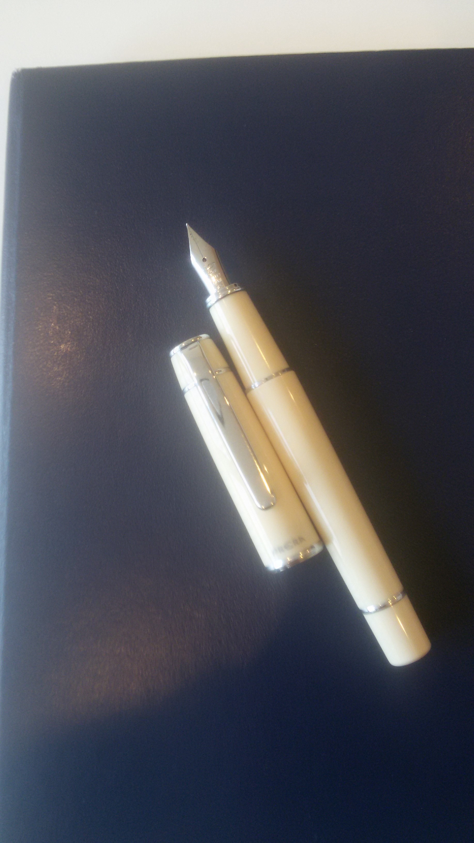 Non pensavo che la mia modesta presentazione riscuotesse tanto successo. Ma veramente vi assicuro che questo abito color avorio dona moltissimo alla nostra penna, e il pennino F rilascia un tratto eccezionale, è piccola ma è una signora penna, e la si trova a un prezzo accessibile.
