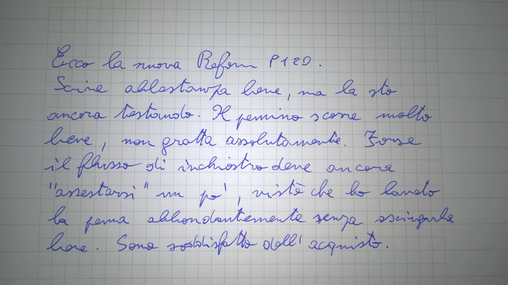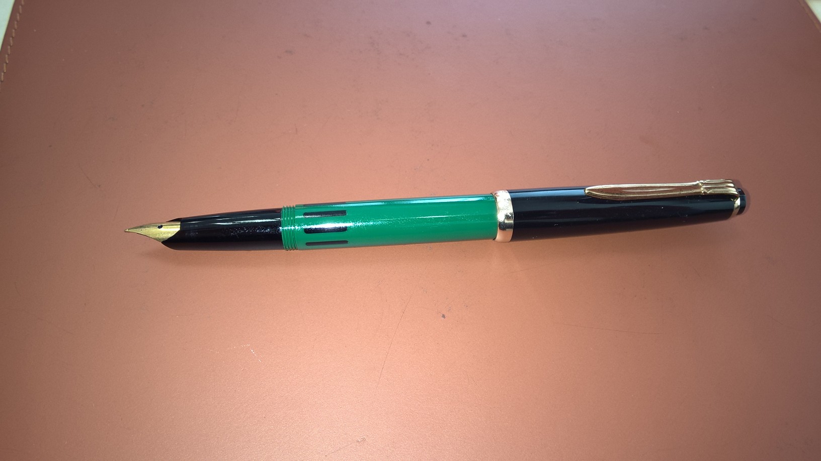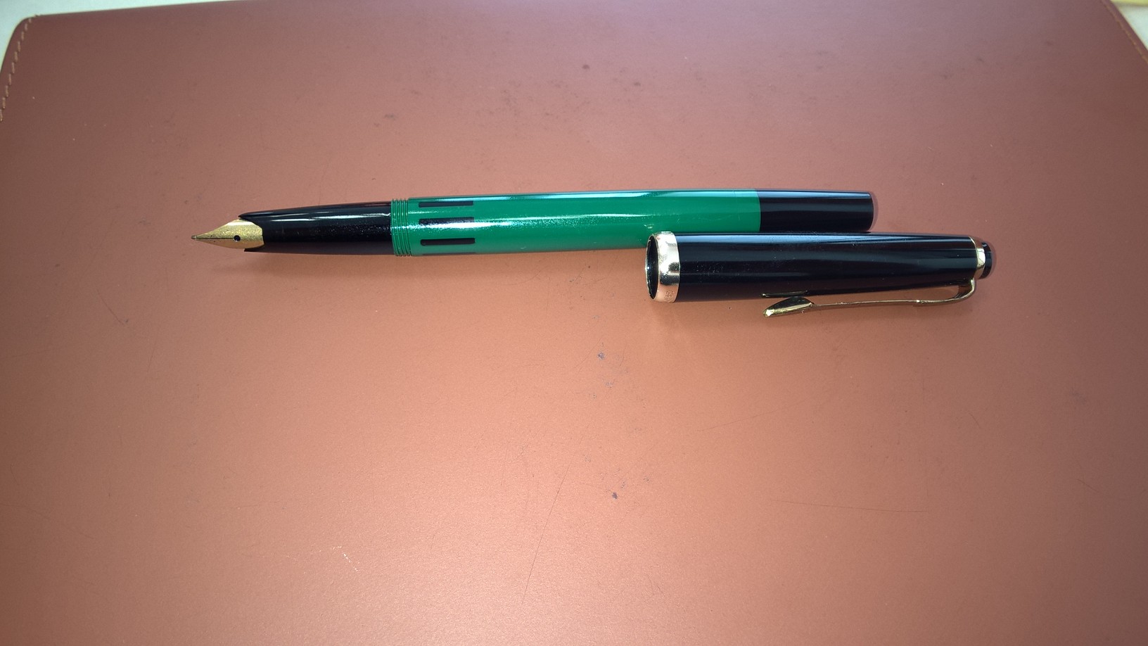 La penna è la sorella della più nota 1745, che ho anche acquistato su e-bay da un venditore spagnolo. La P120 è chiaramente più maneggevole, essendo un pò più "panciuta" e piena. Il pennino è semicarenato ed è molto, e inaspettatamente, scorrevole: dà una sensazione proprio piacevole, non si impunta mai e non perde mai il filo di inchiostro. L'unica pecca di questa penna è il peso, molto scarso, dovuto alla sottigliezza e tipo di palstica utilizzata. Sembra proprio una Pelikan degli anni 80-90. Appena arrivata il pistone era quasi inchiodato, ma dopo diversi lavaggi con acqua e un filo di sapone si è sbloccato e scorre bene. Bisognerebbe migliorare ancora la scorrevolezza, ma devo trovare il modo di arrivare al pistone. Ho provato a separare i due pezzi del corpo penna, scaldando un pò la giunzione con un phon, ma non ci sono riuscito, riuscendo invece a danneggiare un pò la penna, avendo usato un paio di pinze ricoperte da un feltrino, che però si era spostato un pò rigando in due punti il corpo penna. Ho poi letto un rete che c'è il modo di sfilare il pennino e l'alimentatore e da lì, forse si può accedere, magari con uno stuzzicadenti impregnato di grasso al silicone, allo stantuffo.