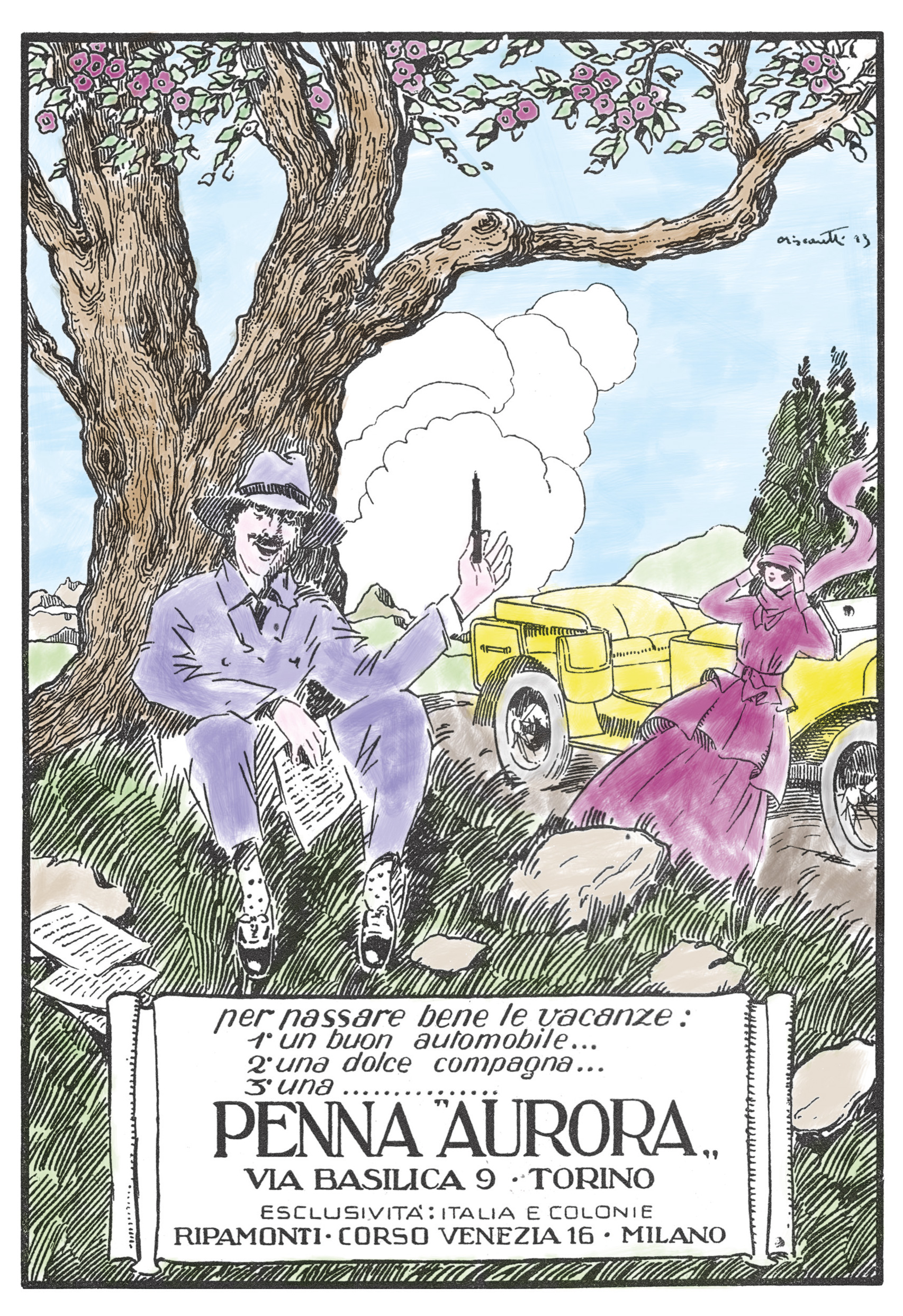 Qualche tempo fa ho recuperato al mercatino una piccola curiosità: una pubblicità Aurora d'epoca ricolorata, probabilmente in tempi recenti