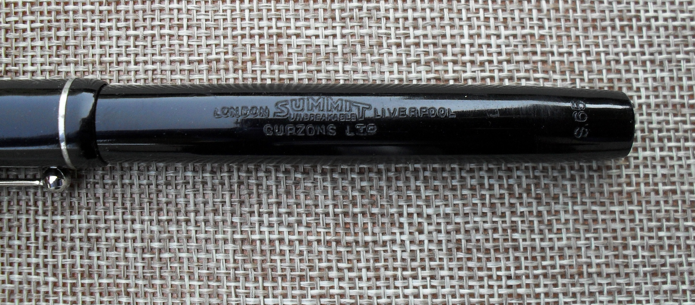 Gli elementi di continuità con la serie “H.” si trovano anche nella sigla “S. 65” impressa in coda al fusto e nella scritta impressa sul corpo, dove campeggia il marchio “Summit” e dove si fa menzione del tipo di celluloide, definita “Unbreakable”, introdotta nel 1930 e più tardi ribattezzata “Eternite” (è ancora in corso, però, una ricerca storica tesa a stabilire se quest’ultima fosse invece una variante della celluloide diversa dalla “Unbreakable”).