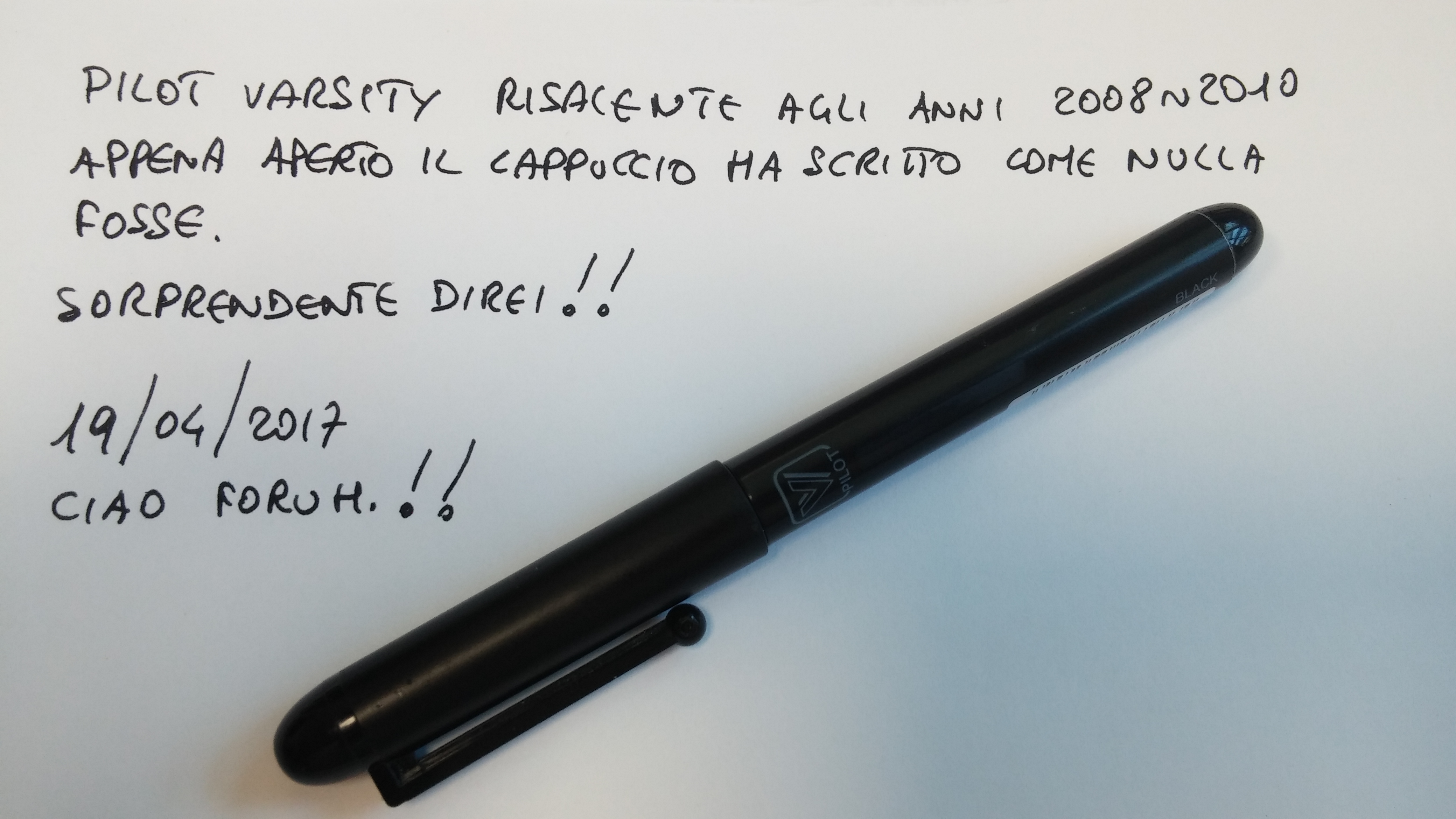 La scorsa settimana ho ritrovato in una borsa che non toccavo da almeno 7 anni (se non 8 o 9) una Pilot Varsity usa e getta che acquistai all'epoca andando credo ad un congresso.