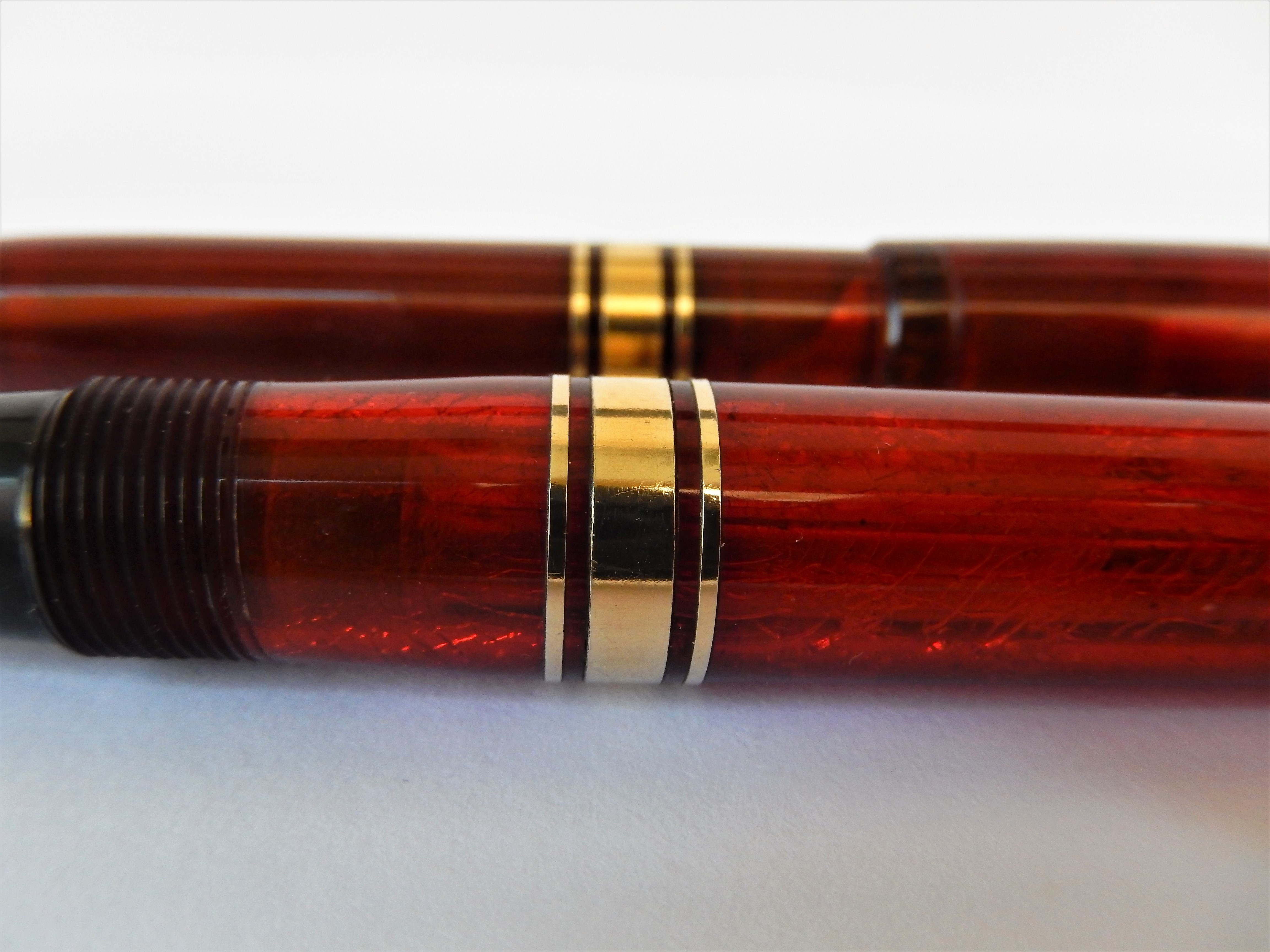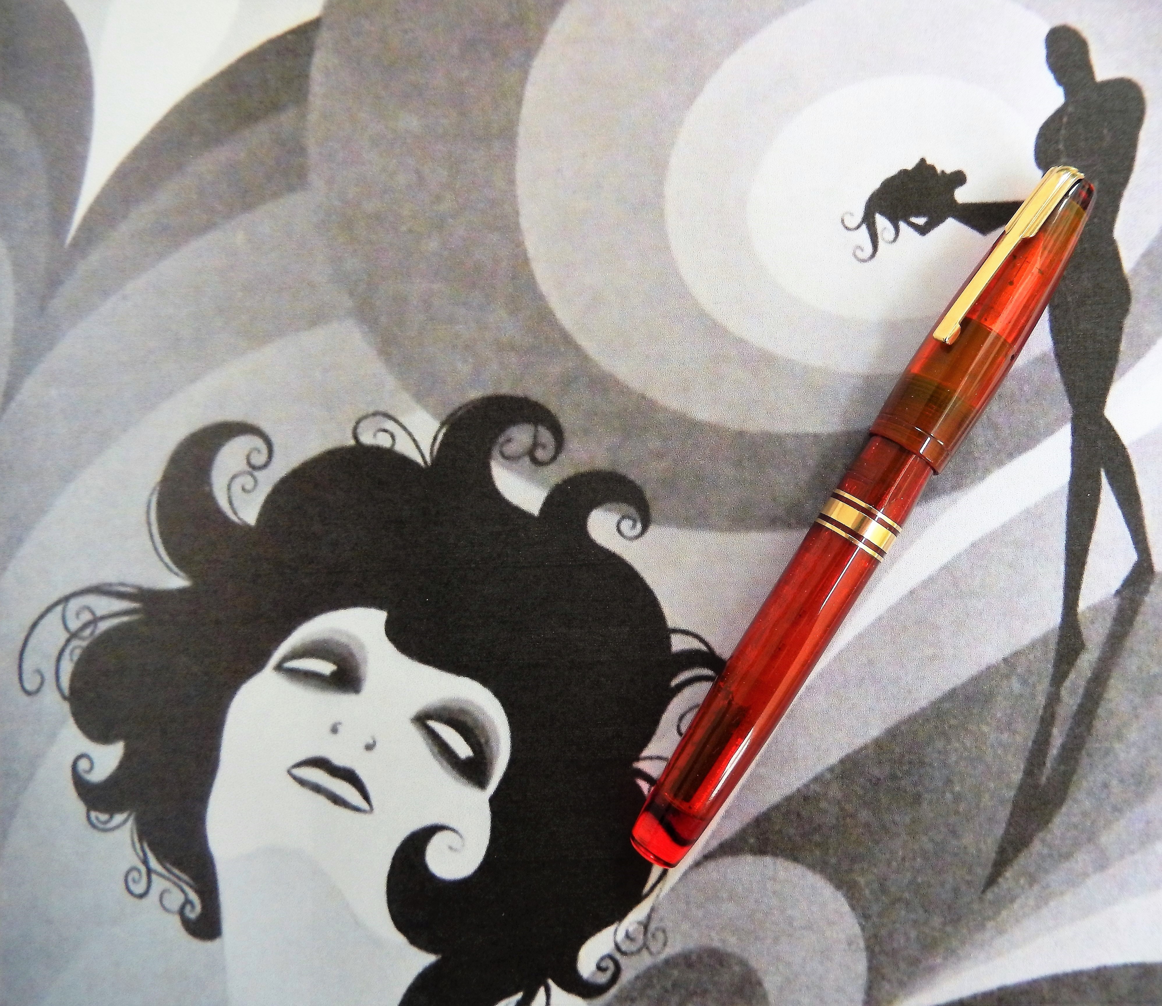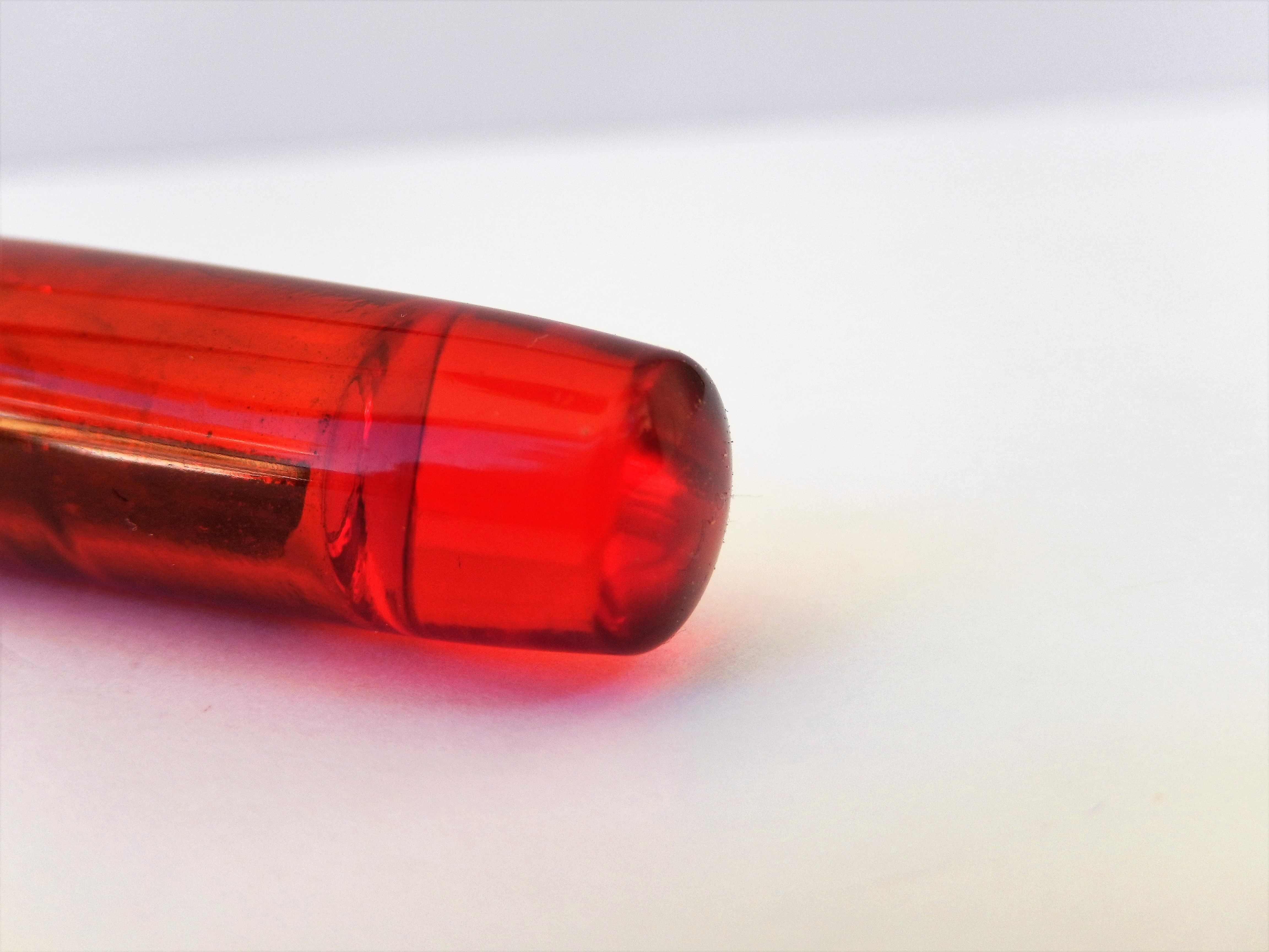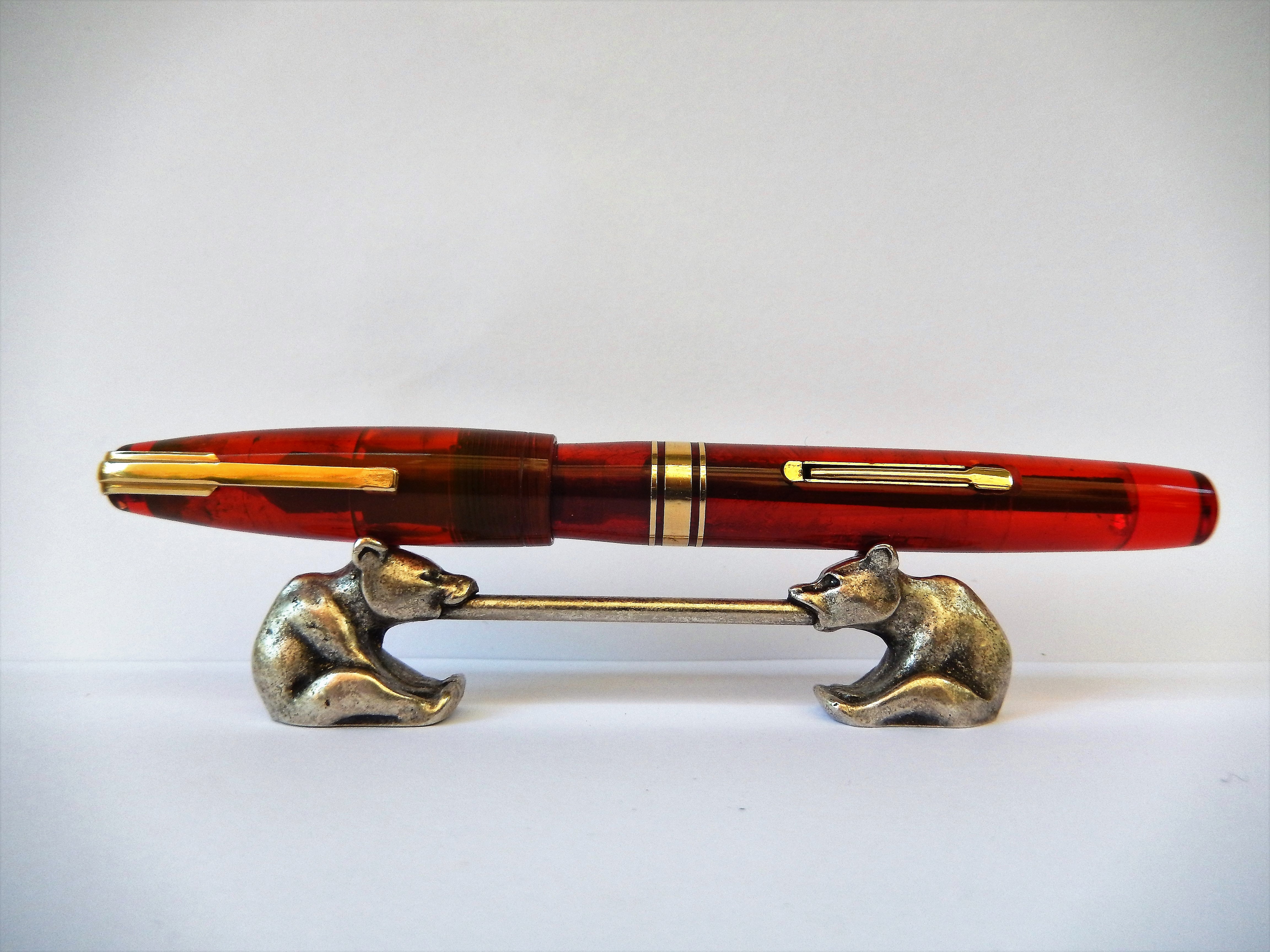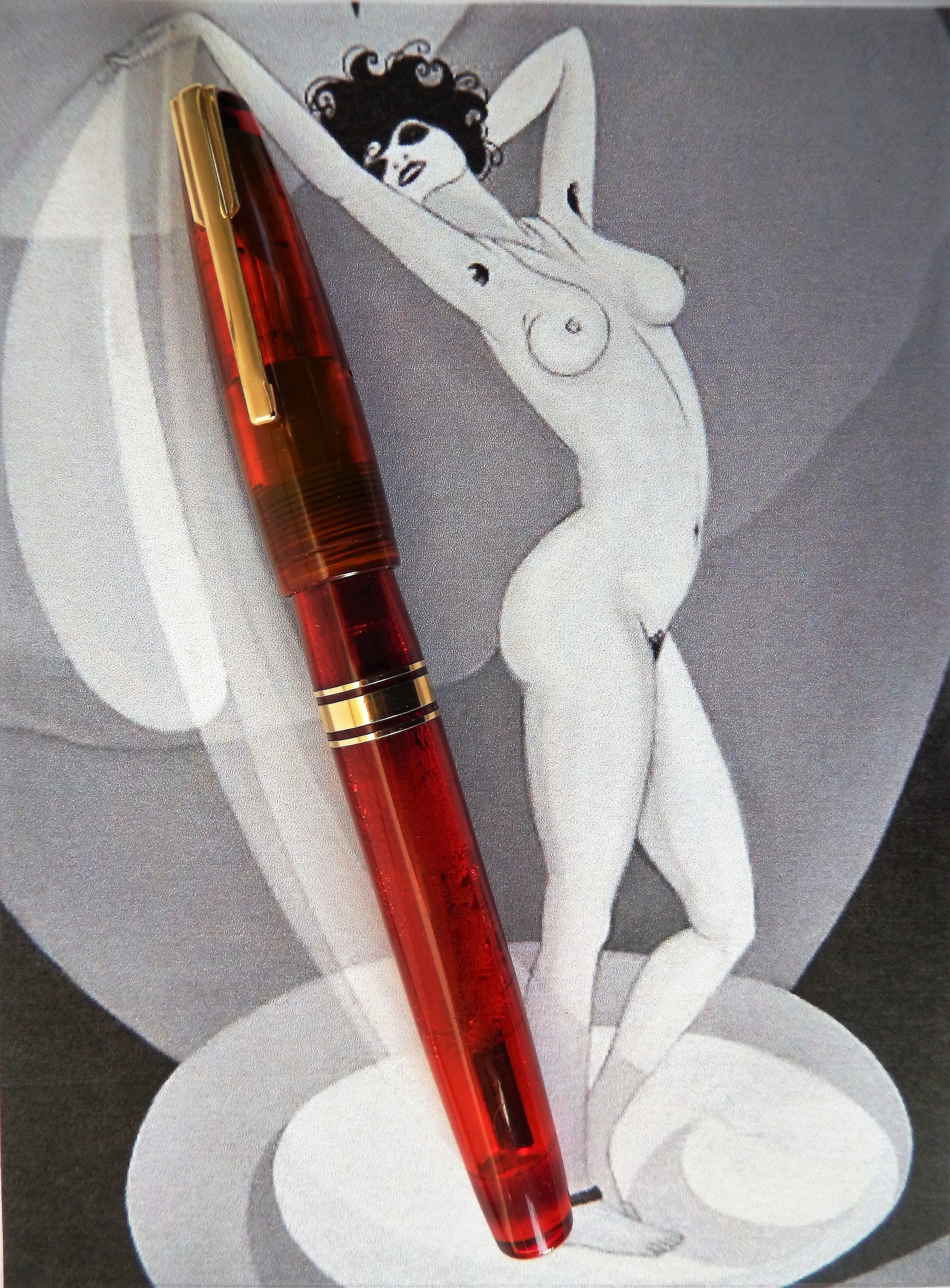 La penna invece... bellissima la lucite rossa, ipnotica, ma la forma non mi piace, specialmente il cappuccio... per me ha qualcosa di incompiuto.