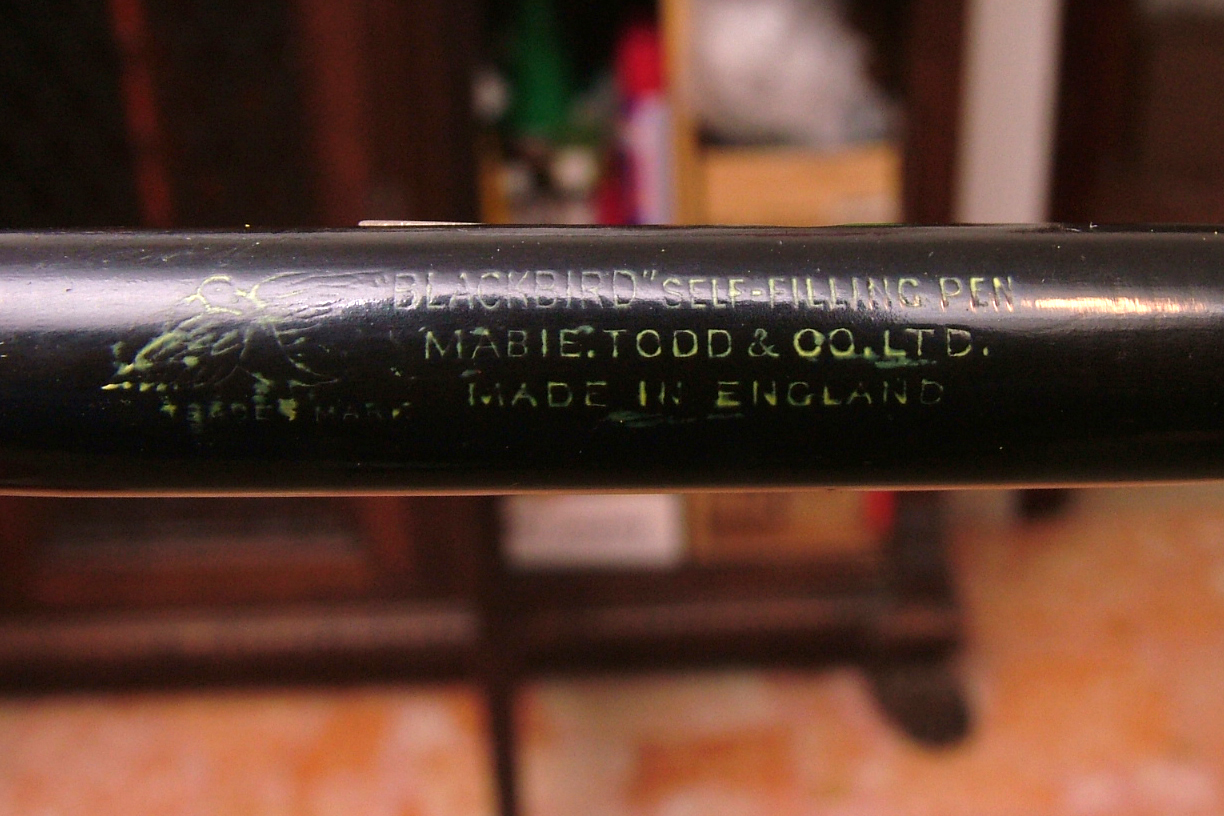 Sul fusto porta la scritta Black Bird self-filling pen MabieTodd &Made in England CO. LTD.