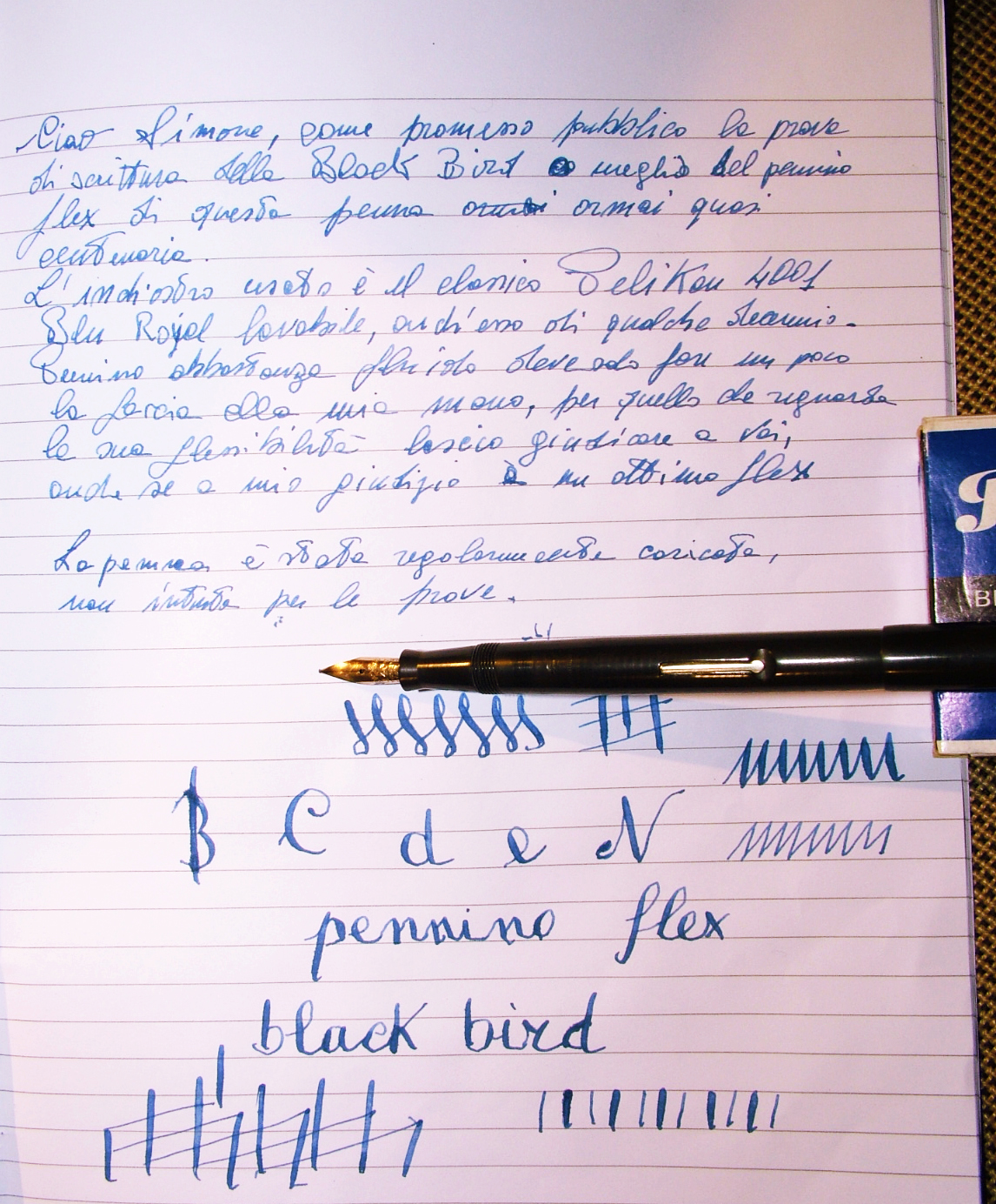 é una Black Bird Mabie Todd inglese, nonostante sia la linea economica la trovo ben fatta e e soprattutto usa dei pennini flex veramente flex.