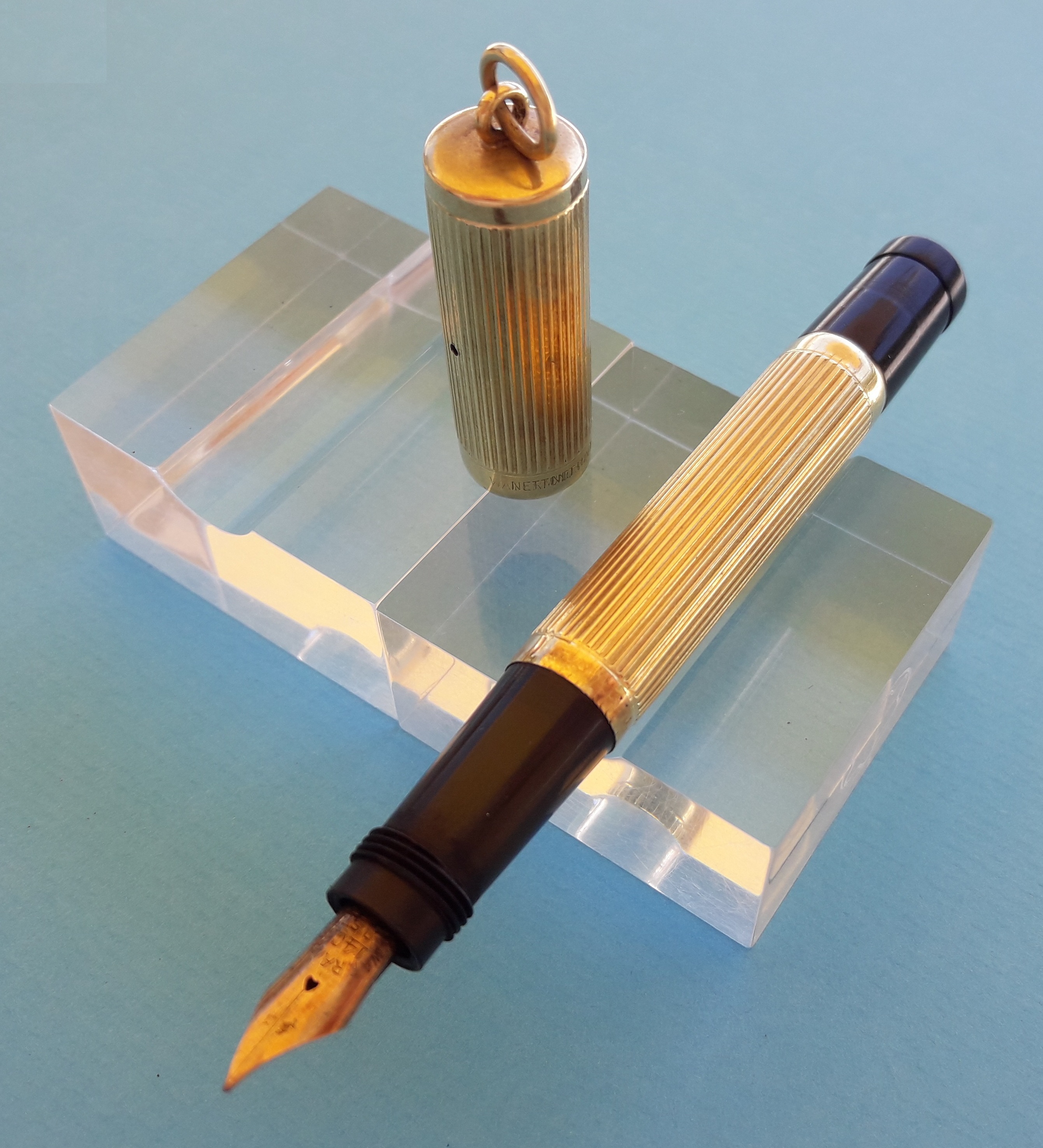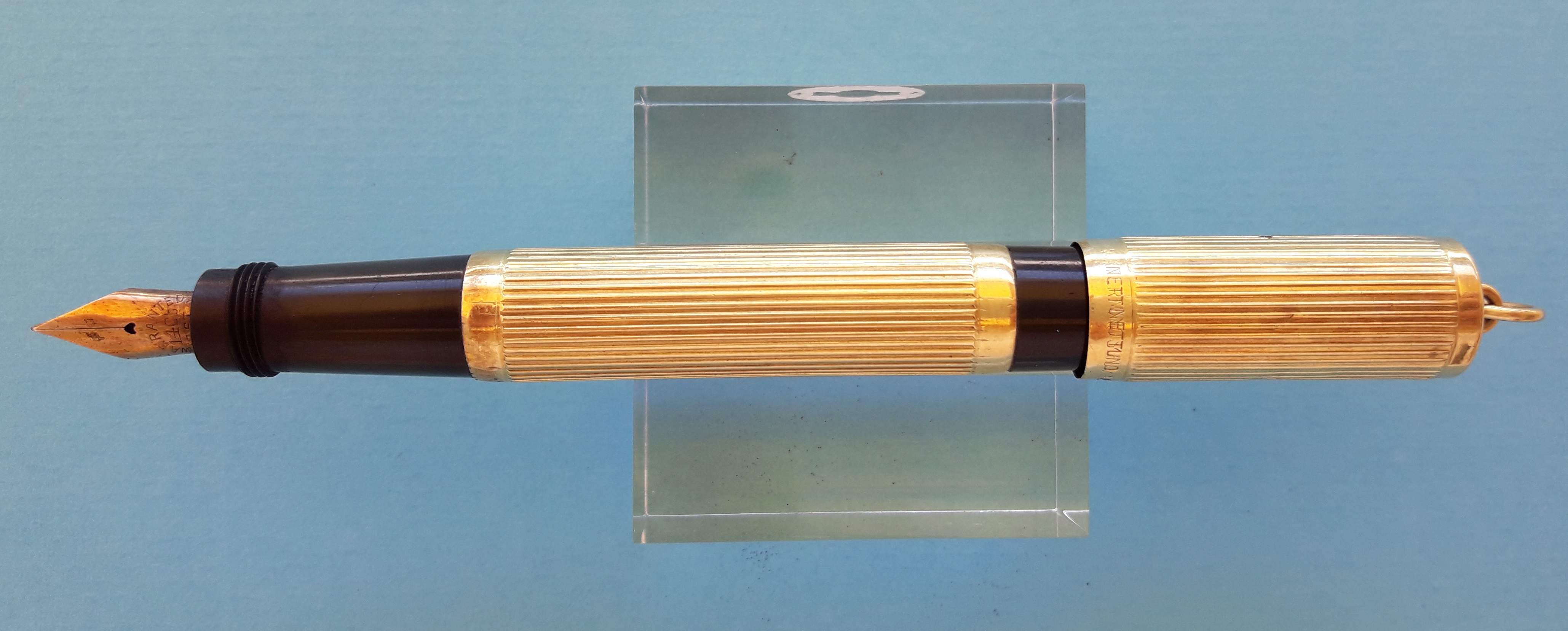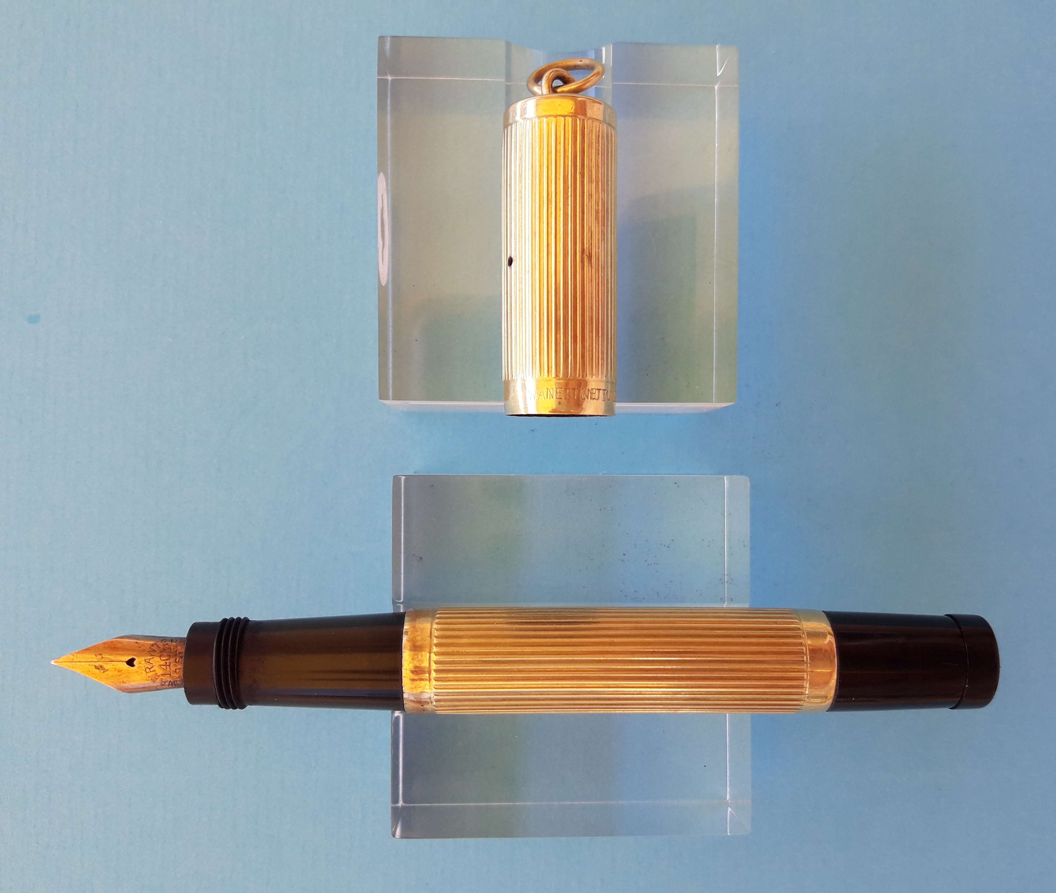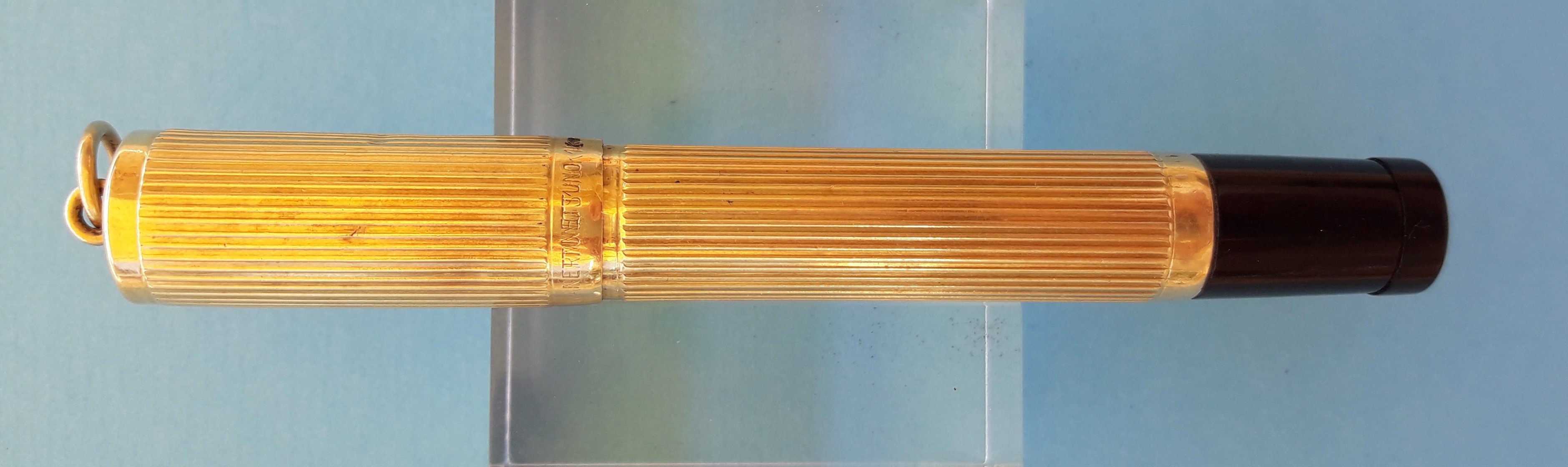 https://forum.fountainpen.it/viewtopic.php?f=8&t=14407 ), il modello “scanalato” era uno dei decori sicuramente adottati dalla Waterman, una corazzata industriale che dopo la I Guerra Mondiale si era posizionata al vertice del mercato delle penne di lusso (nel mondo intero prima che in Italia). Il rivestimento proposto a Waterman dal laboratorio (milanese) era davvero elegante (oltre che