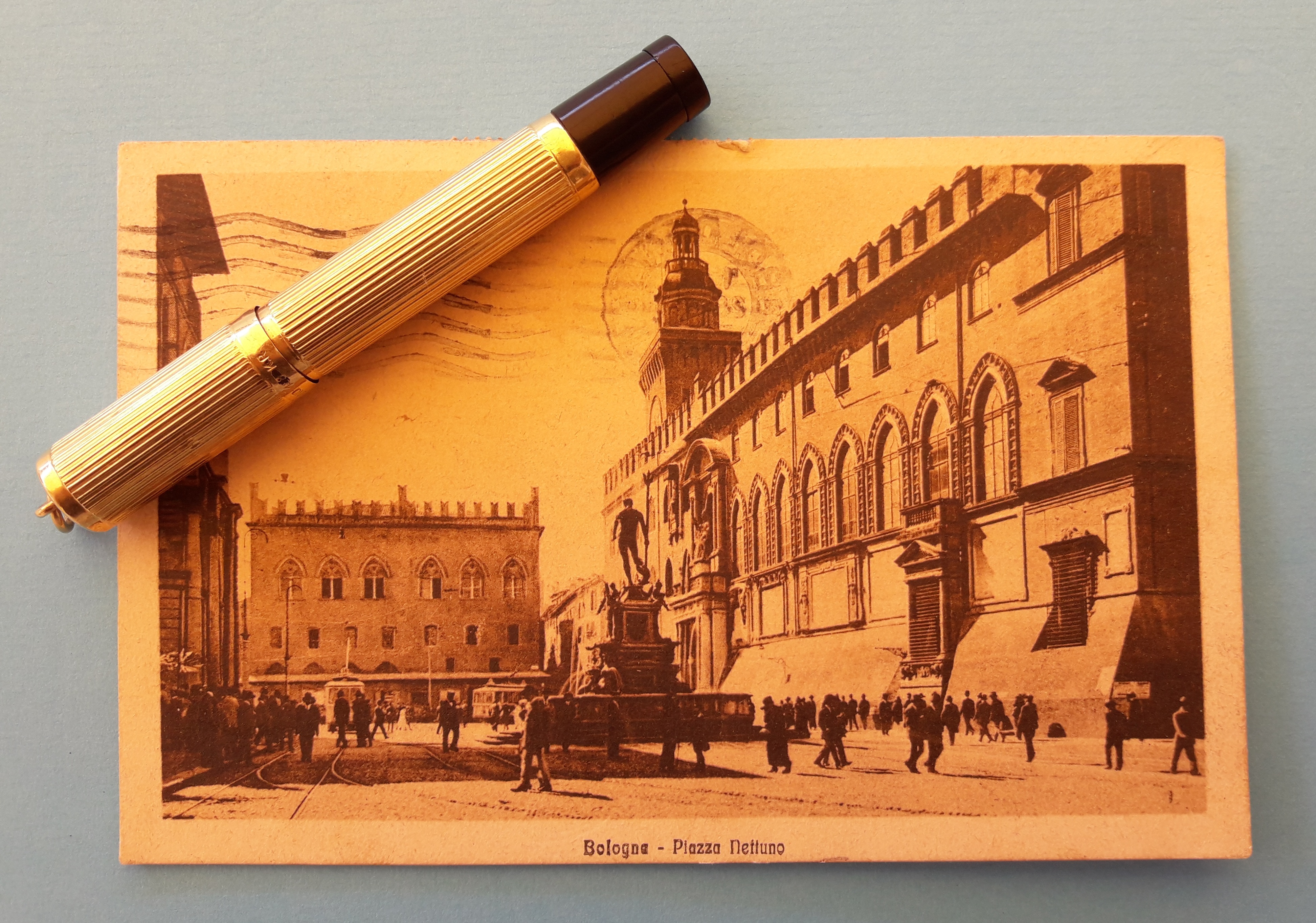 Probabilmente si riteneva che il (piccolo) cliente bolognese non avrebbe fatto storie, o forse che “sgusciare”/riportare a nudo la penna appena laminata l’avrebbe distrutta, perciò tanto valeva fare uno sconto e rimandarla a Bologna così com’era (mal)riuscita.