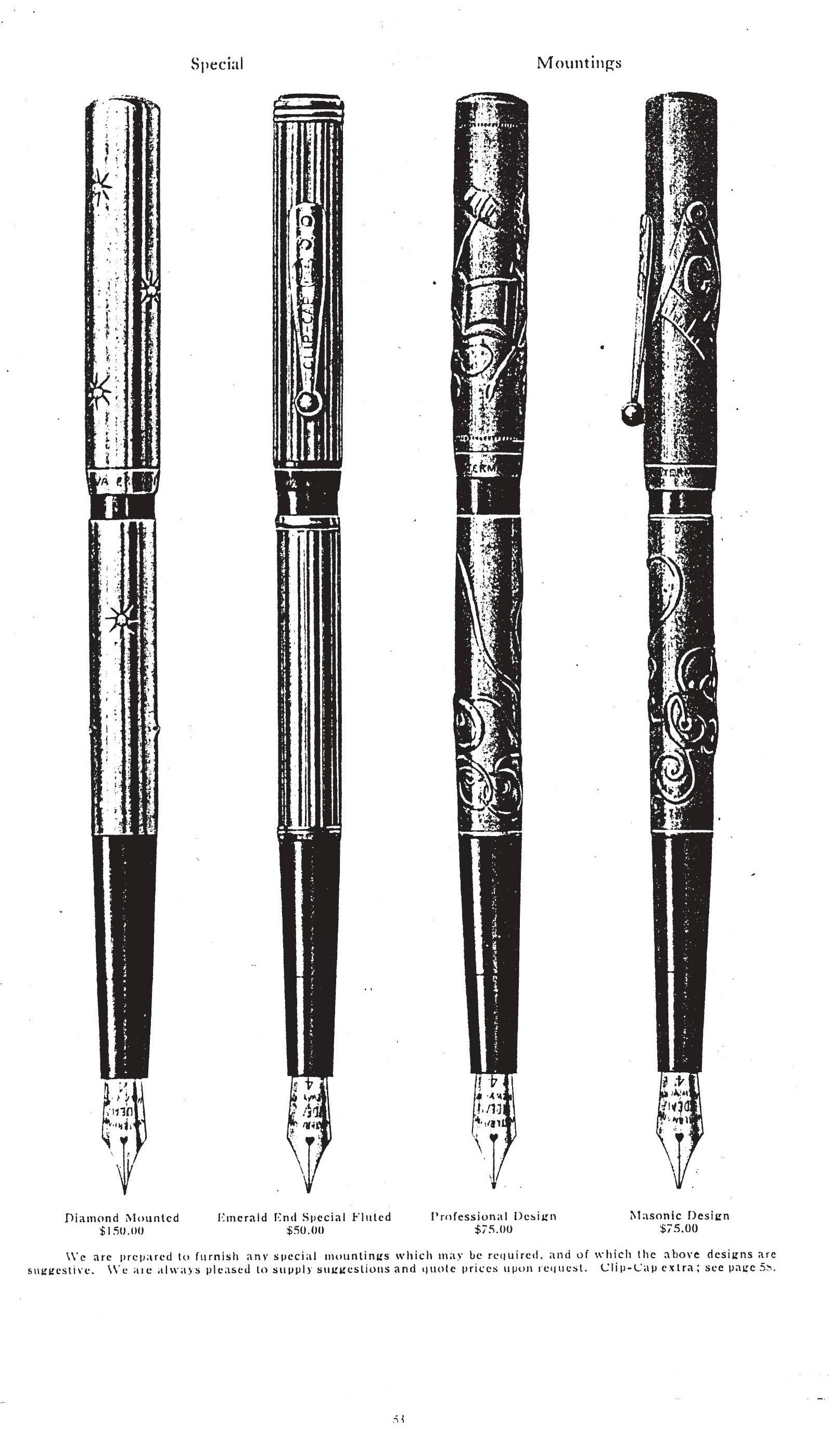 special mountings) disponibili nella produzione “di fabbrica” americana della Waterman, in quanto destinato ad accogliere una gemma sulla testina del cappuccio, come si evince dallo splendido catalogo del 1908.