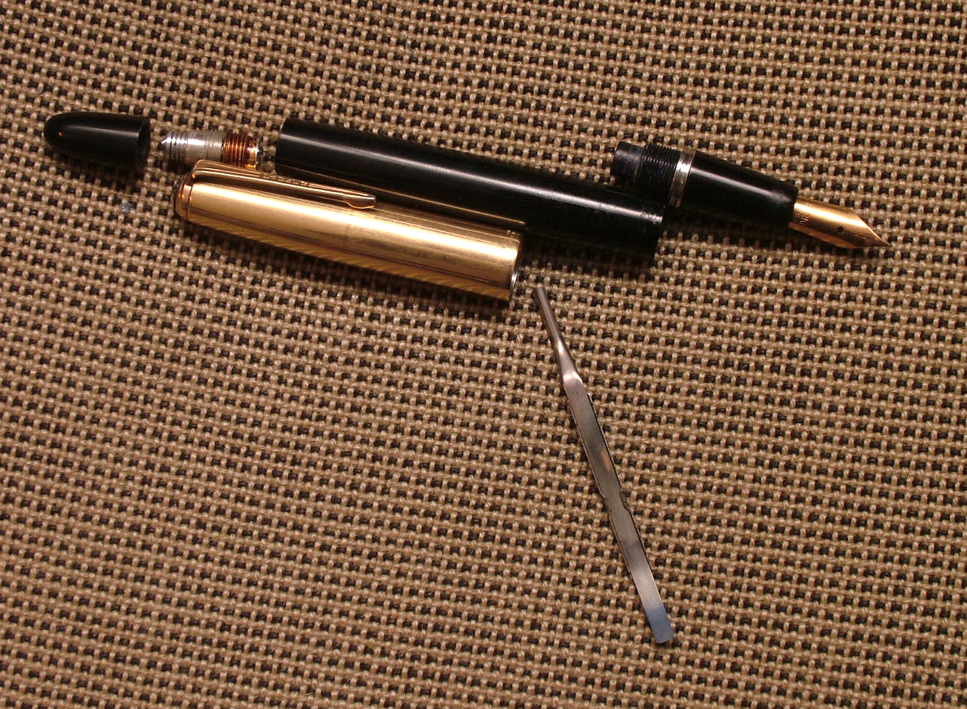 Grazie Marcello, ho provato a levare il pulsantino, ma come hai detto doveva avere qualche problema, per non rovinarlo, visto l'attacco filettato in metallo ho pensato fosse tipo Vacumatic ed avevo ragione.