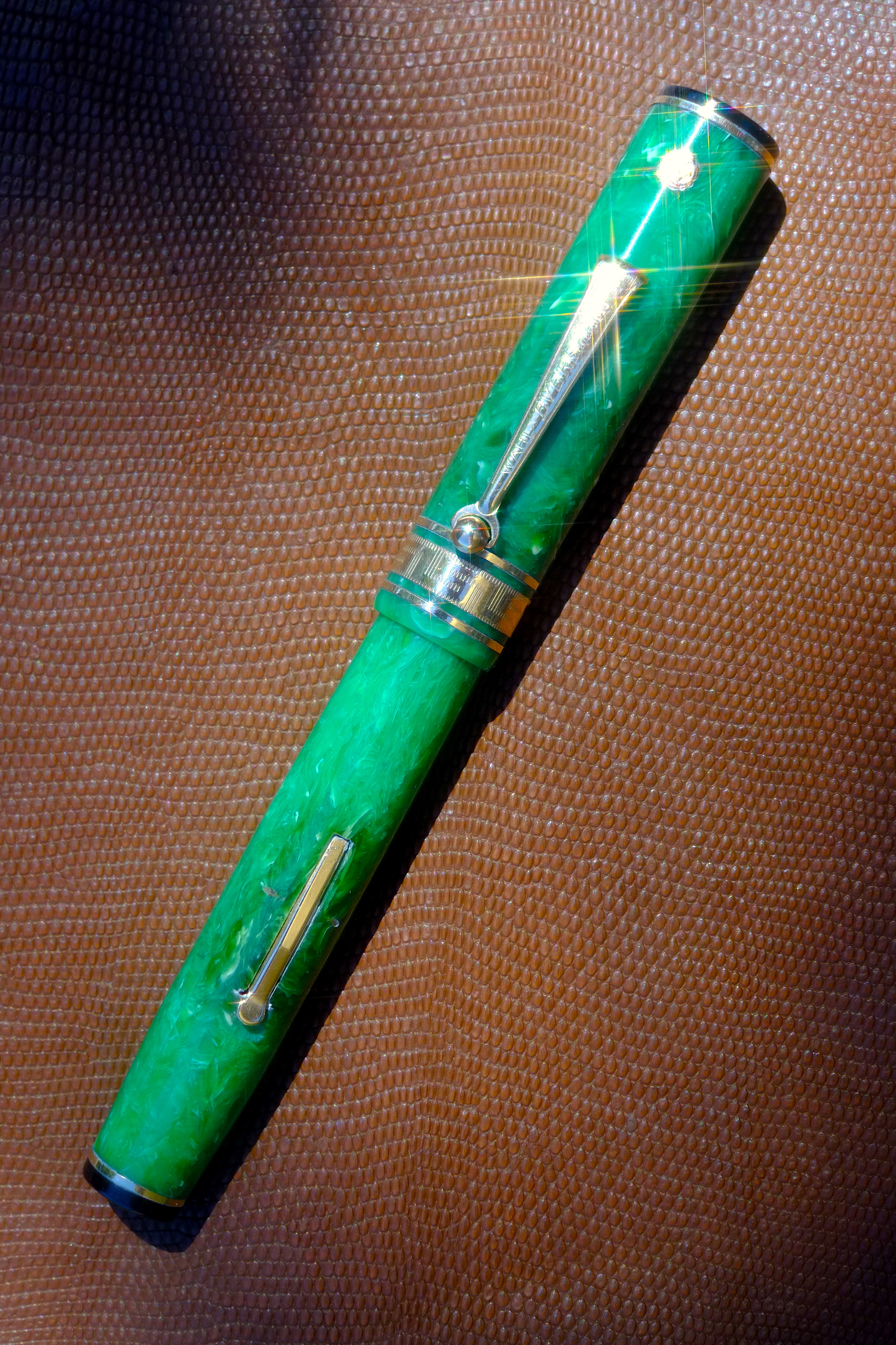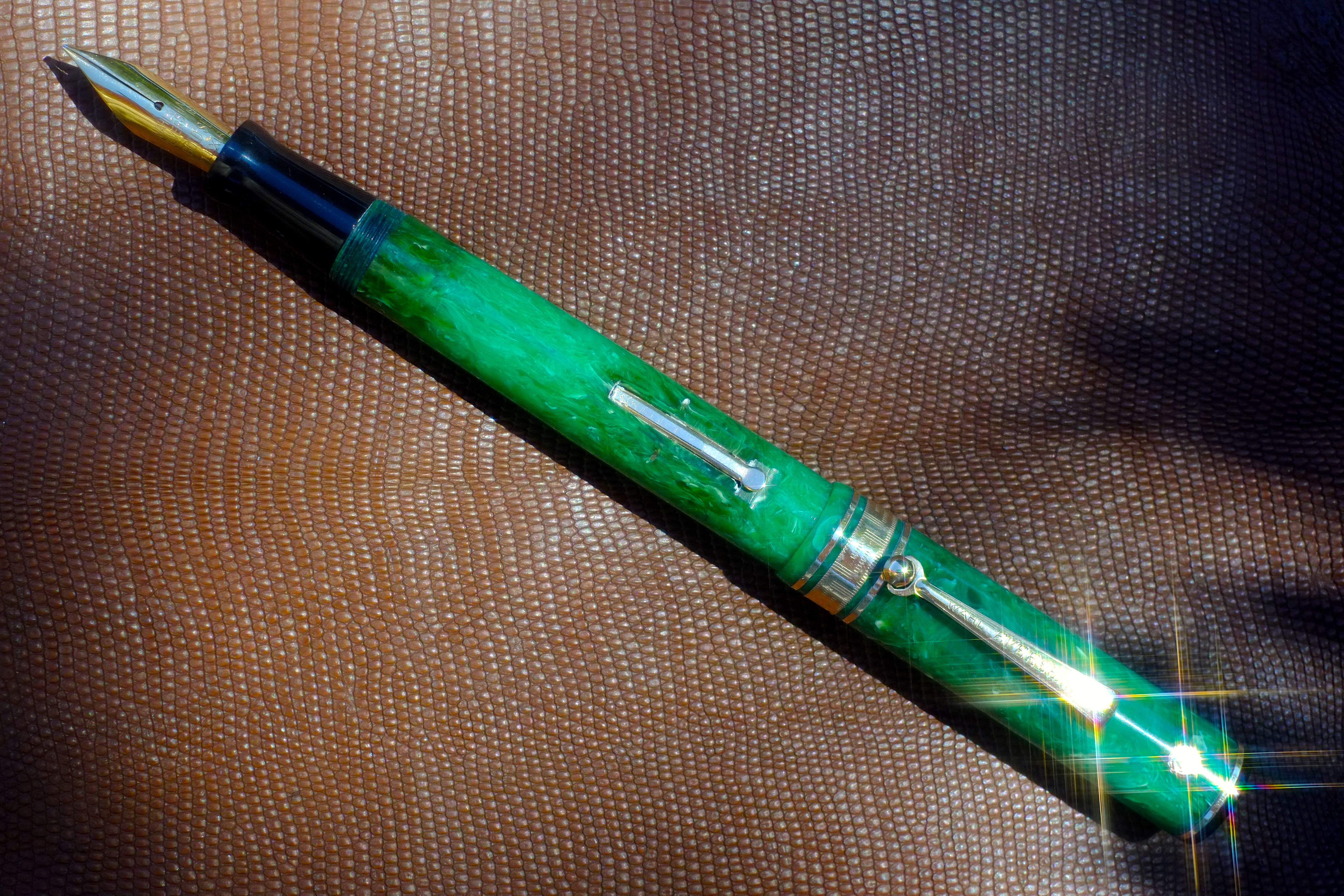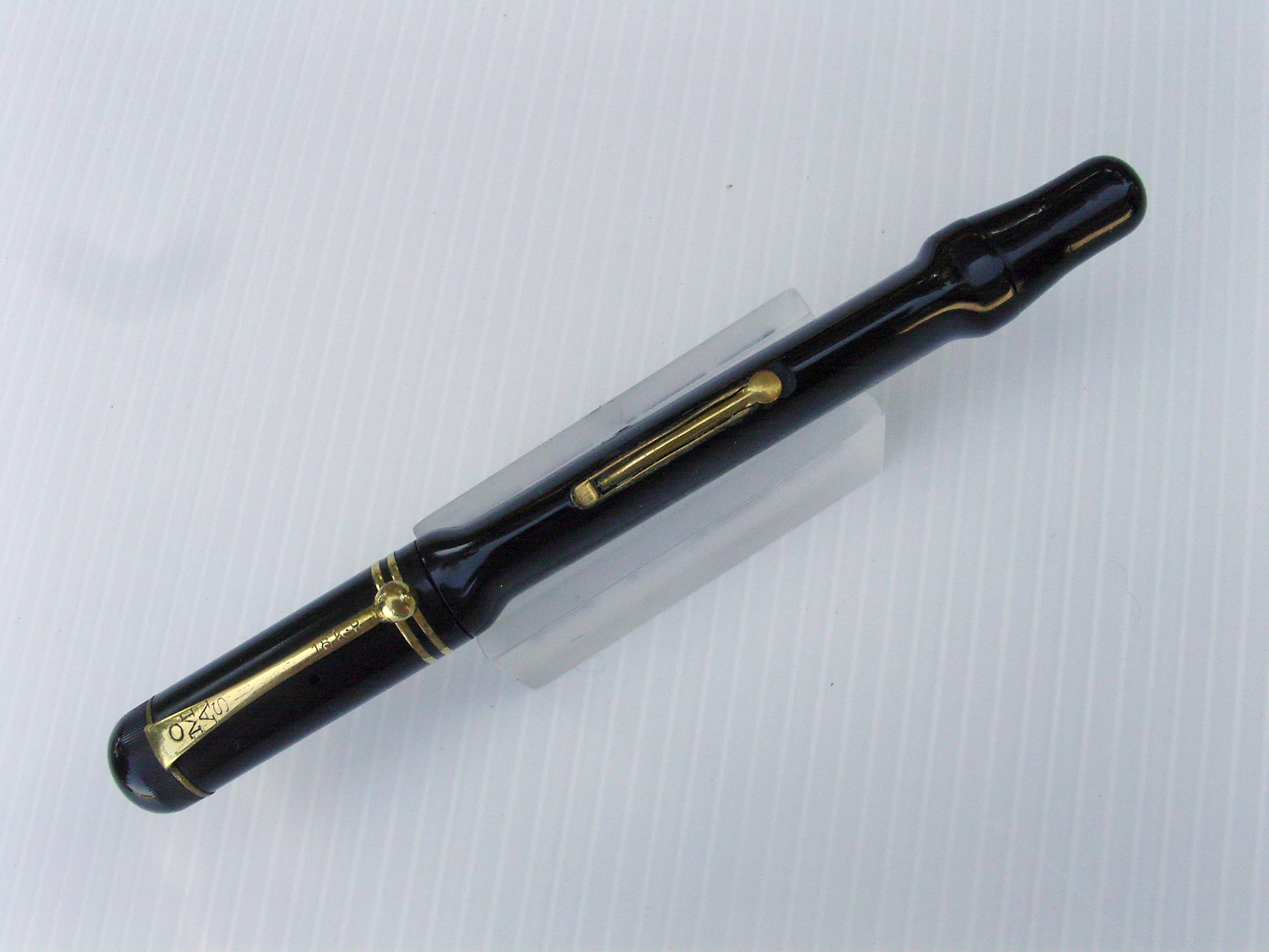 A parte le valutazioni estetiche, il brevetto è secondo L.J. del 1927. Dal 1930 sarebbero state prodotte la seconda e la terza serie (tipo Parker Duofold e Duofold streamlined) di questa Penna del Dottore della Omas. Quindi forse il pennino corretto dovrebbe essere quello con il punzone Omas 14 carati. Oppure la produzione di quella con caricamento a levetta (tra l'altro nell'intelaiatura tipo Waterman) è proseguita dopo il 1934?