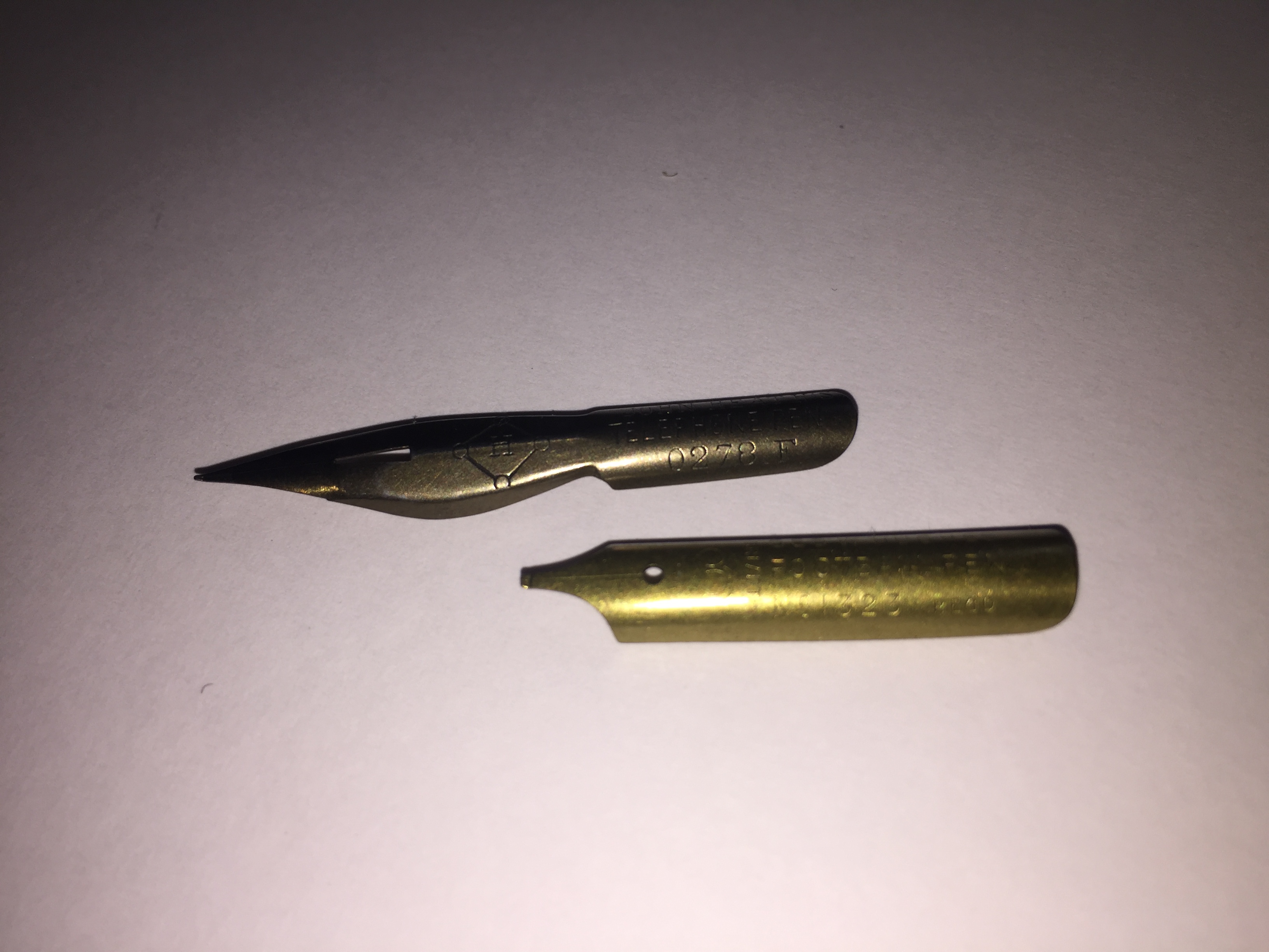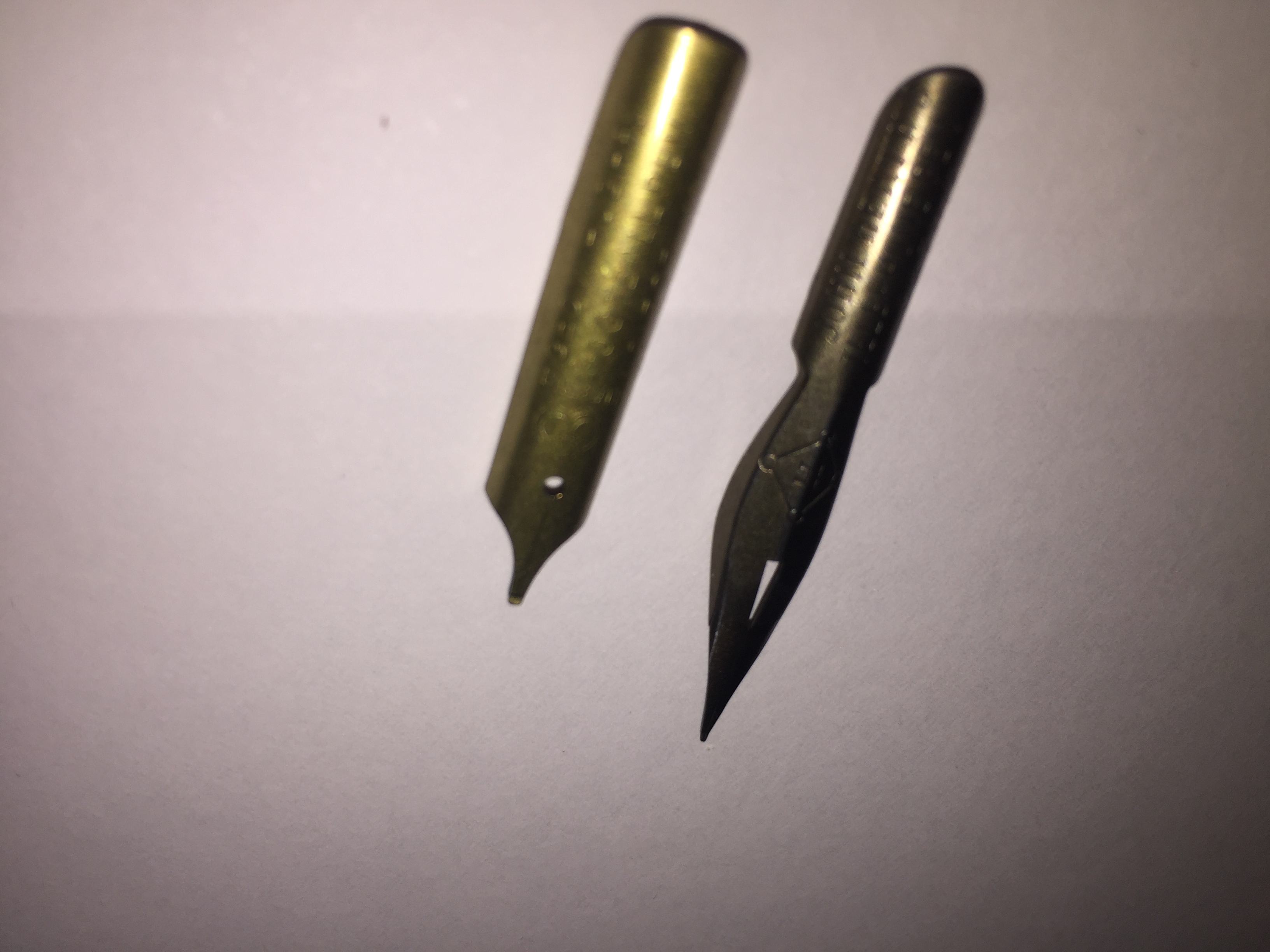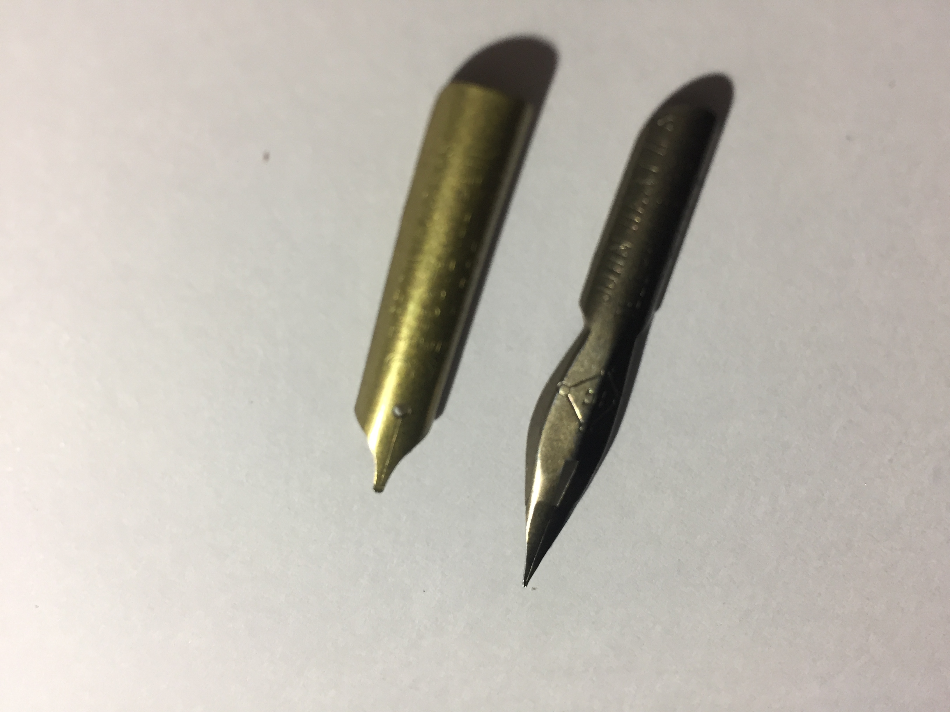 Piccola nota, sono entrambi placcati (in oro o bronzo) e ciò per allungarne la durata e proteggerli dalla corrosione dei primi inchiostri industriali ferrogallici immessi sul mercato.