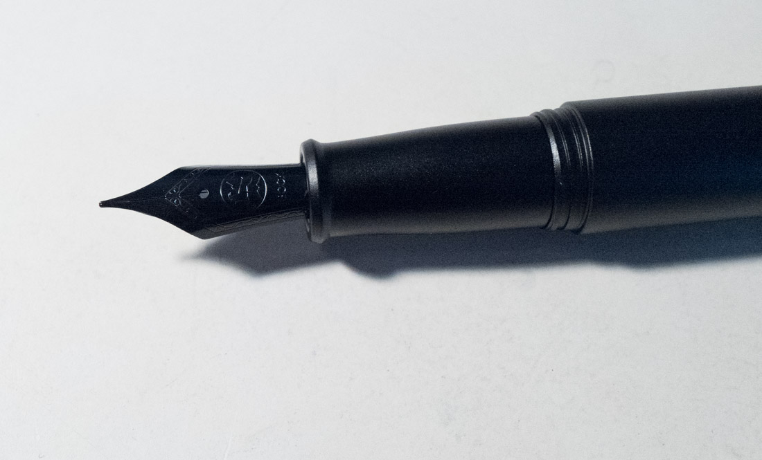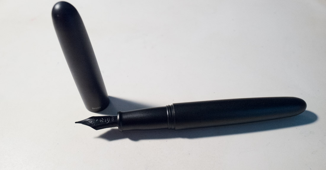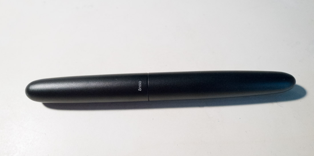 L'unica scritta presente sulla penna è la marca Ensso sul cap, per il resto è fusto di alluminio e nero con un pennino nero anch'esso, si tratta di un Bock di misura #6.