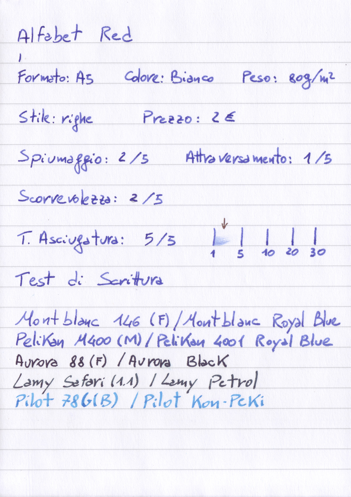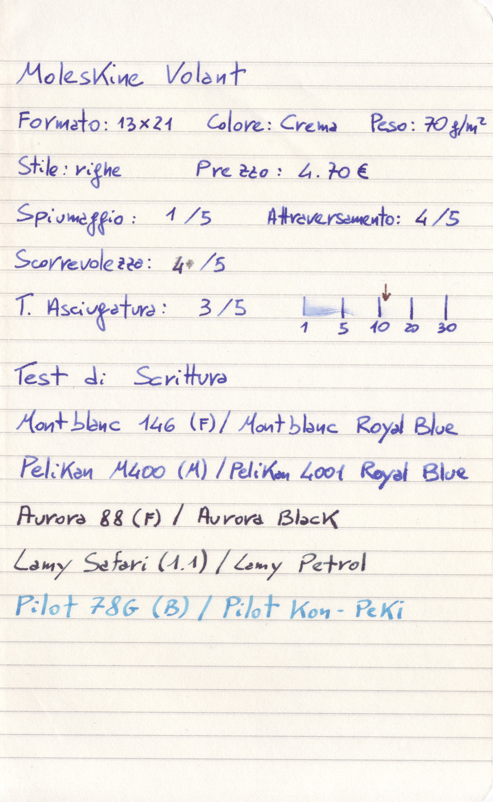 Mi colpisce l'ottimo voto per l attraversamento della moleskine. Quelle che ho provato io erano terribili, ma forse l'inchiostro non è comparabile :)