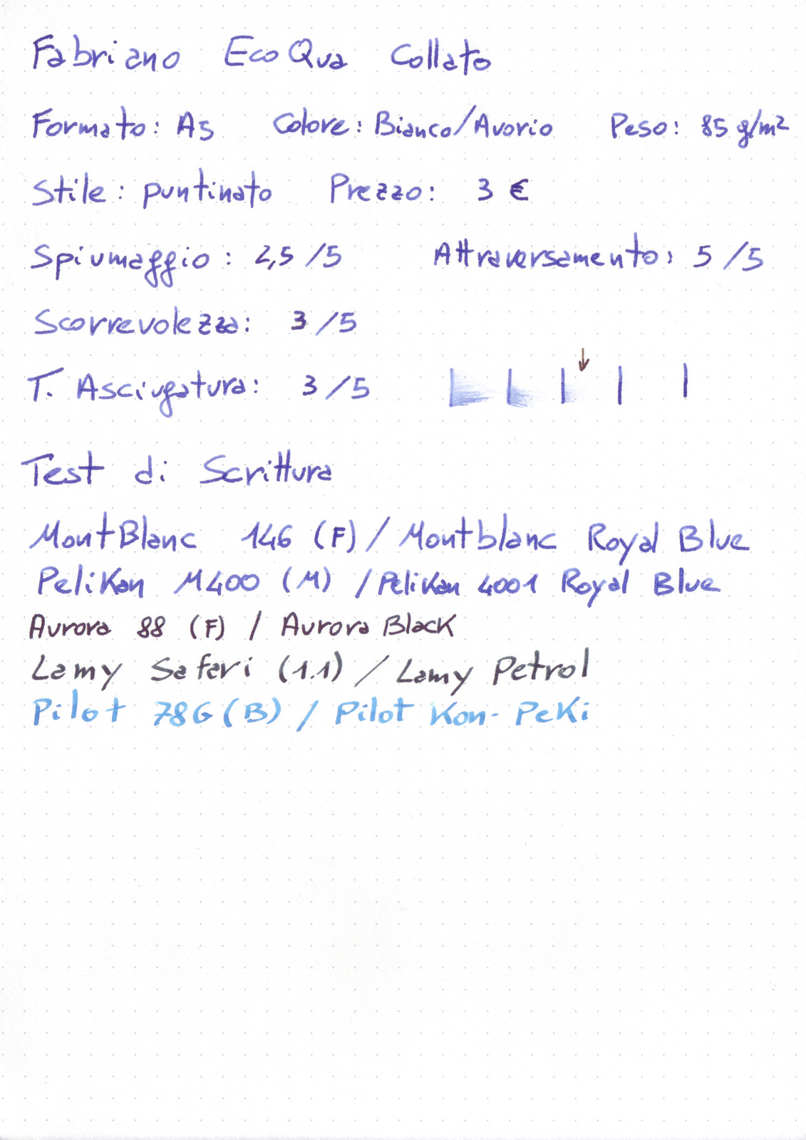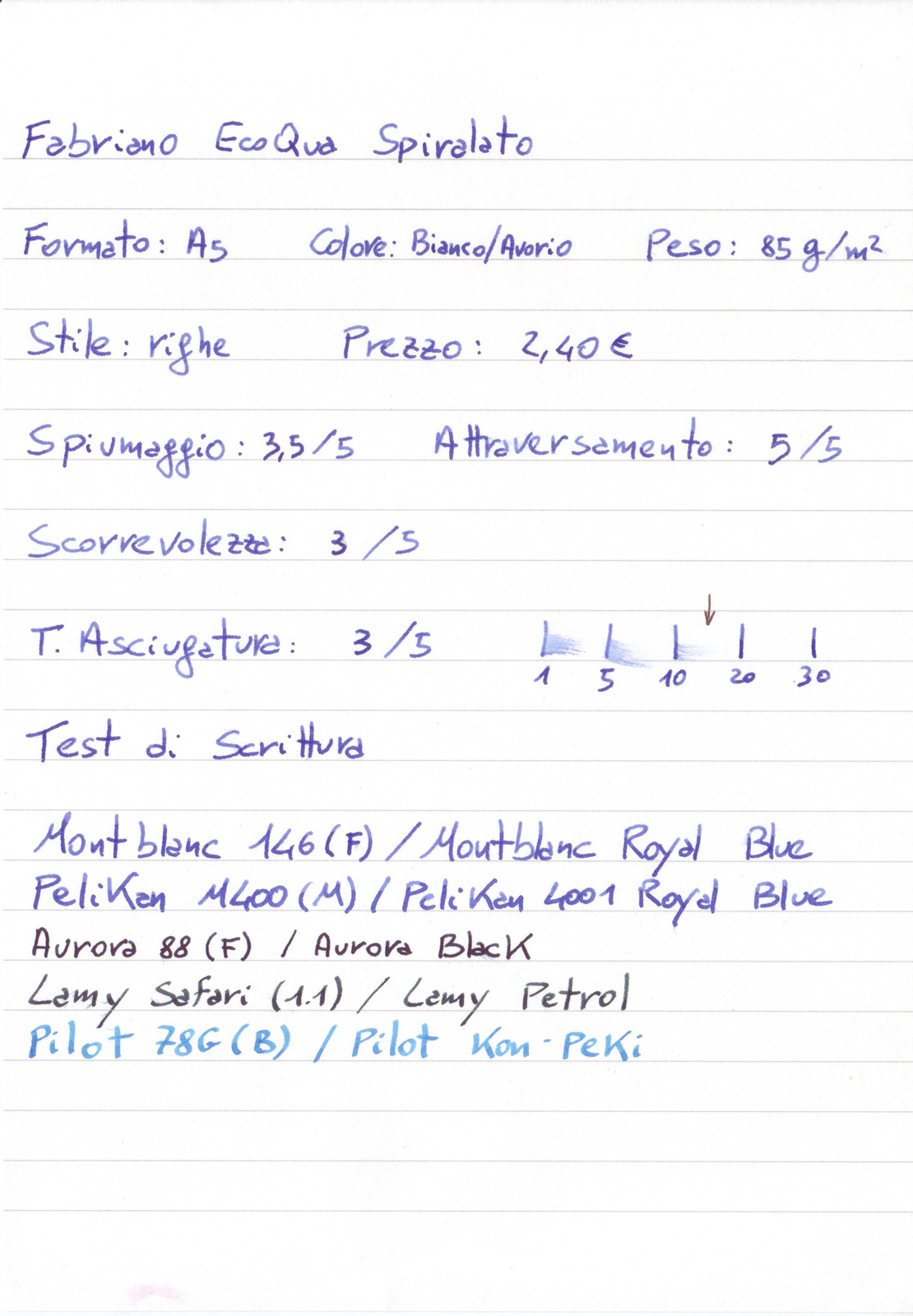 ma se non ti impegnerà troppo, mi sarebbe d'aiuto conoscere le tue sensazioni di scrittura che alla fine sono quelle alle quali si affida ogniuno di noi al di al dei dati "strumentali" come asciugatura, scorrevolezza,.....ecc.