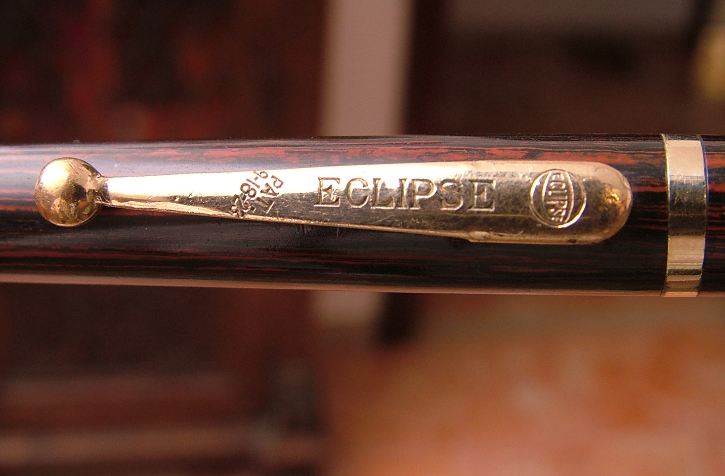Fino a qualche tempo fa per me "Eclipse" era solo il nome di un brano dei Pink Floyd ora è anche una bella matita in Ebanite fiammata di cui mi farebbe piacere avere più notizie, ho dato un occhiata su Wiki, una caratteristica era l'attacco della clip, che sulle stilo si ossidava e rompeva il fermo a causa dell' inchiostro, ma la matita caricandosi solo con mine, non soffre del suddetto problema.