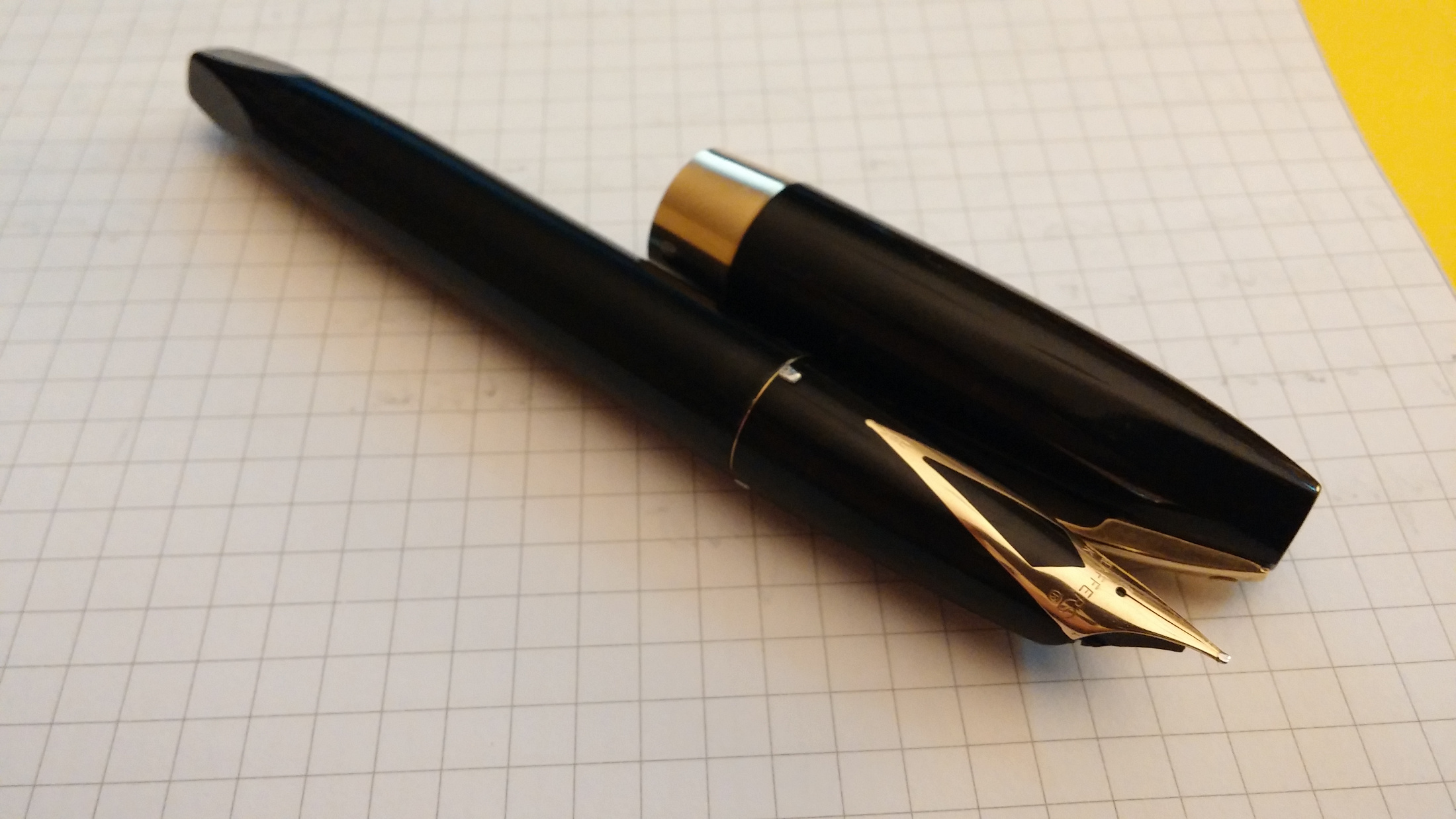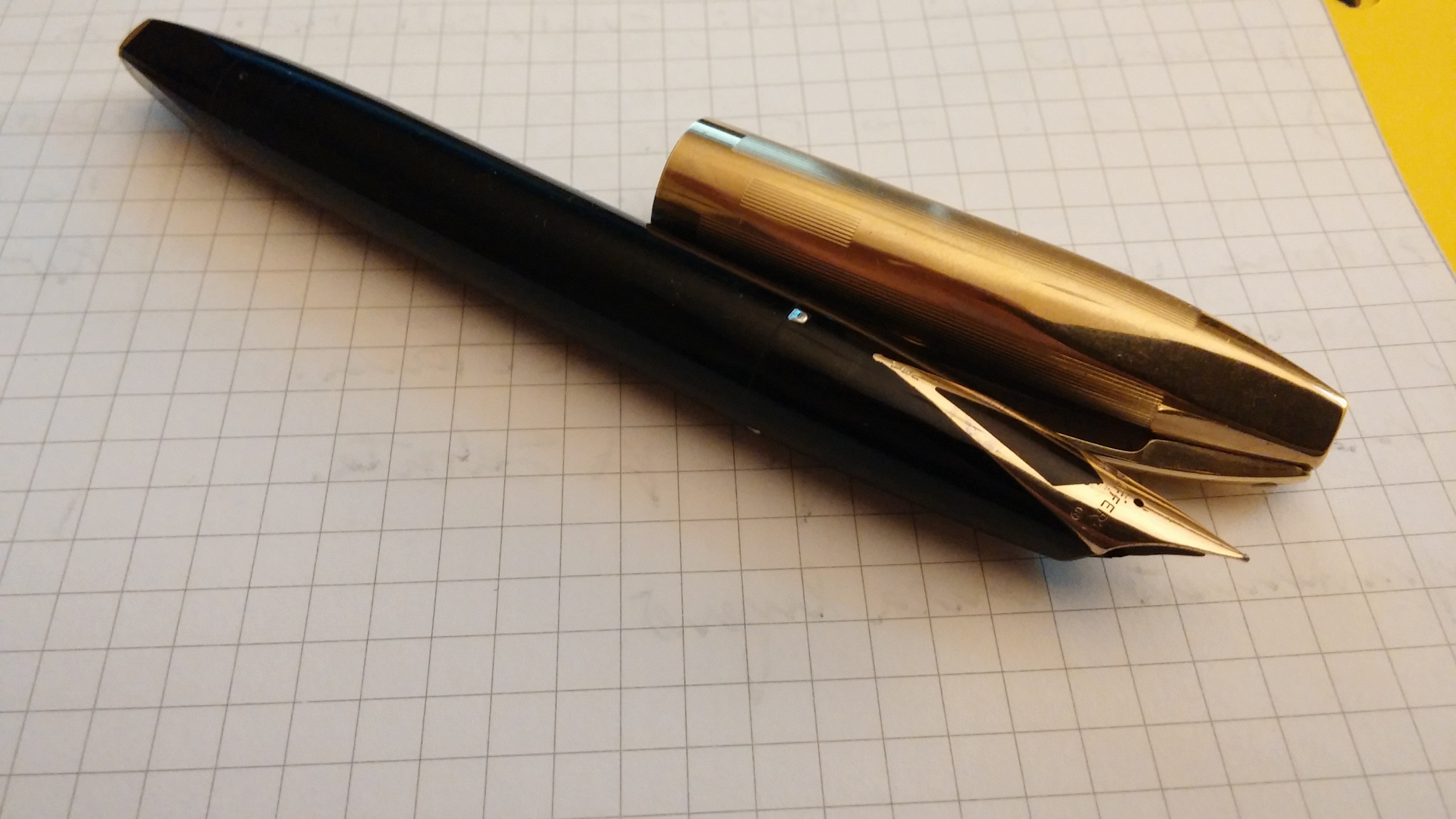 Son qui oggi per redigere la mia seconda recensione! Come già anticipato in un altro argomento, ho appena finito la maturità, e come premio per il risultato i miei genitori mi hanno regalato ognuno una stilo. Oggi parlerò appunto di una penna che mi ha lasciato davvero a bocca aperta, non solo per la sua bellezza ma soprattutto per come scrive. Sto parlando della famosa Sheaffer PFM, uno dei modelli di punta della casa americana negli anni '60. Questa penna è da tempo immemore una delle più desiderate dal sottoscritto, e mia madre è testimone dei miei innumerevoli melodrammatici tentativi di farmene regalare una quando ancora andavo alle medie. Il tutto nacque da un'immagine di una Legacy su un catalogo, con la didascalia che attribuiva alla PFM il ruolo di ispiratrice per la collezione Legacy. Una penna inconfondibile ed elegante, dalle dimensioni importanti ma tutto sommato maneggevole, e soprattutto altamente innovativa. L'orientamento un po' maschilista di questa penna non riesco a comprenderlo: può benissimo essere usata da una mano maschile, solitamente possente e vigorosa, ma anche da una leggera e fine mano femminile; per l'appunto mia madre, dalle mani piccole e delicate, l'ha già addocchiata come possibile "prestito a tempo indeterminato". La produzione di questa penna parte dalla fine degli anni '50 e viene bloccata dopo circa dieci anni. Seppur molto innovativa e originale, il suo successo all'epoca non ripecchiava le aspettative, perciò nel 1963 la produzione passò dalle cinque versioni iniziali (Mk I, II, III, IV, e V) alle sole Mk III e V, fino al 1968, quando la Sheaffer blocco l'intera produzione della PFM. Questa penna porta con sè numerose innovazioni: dal design del pennino al caricamento, ma ne parlerò più avanti. Andiamo ora descrivere le caratteristiche tecniche di questa principessona: