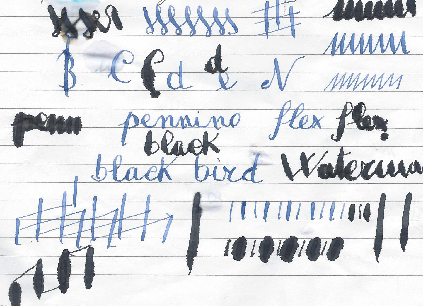 L'ho messo a confronto con l'ottimo flex della blue Bird (scrittura bleu) il pennino flex della Waterman 42 ( scrittura nera) scrive aprendosi il doppio ed anche più.