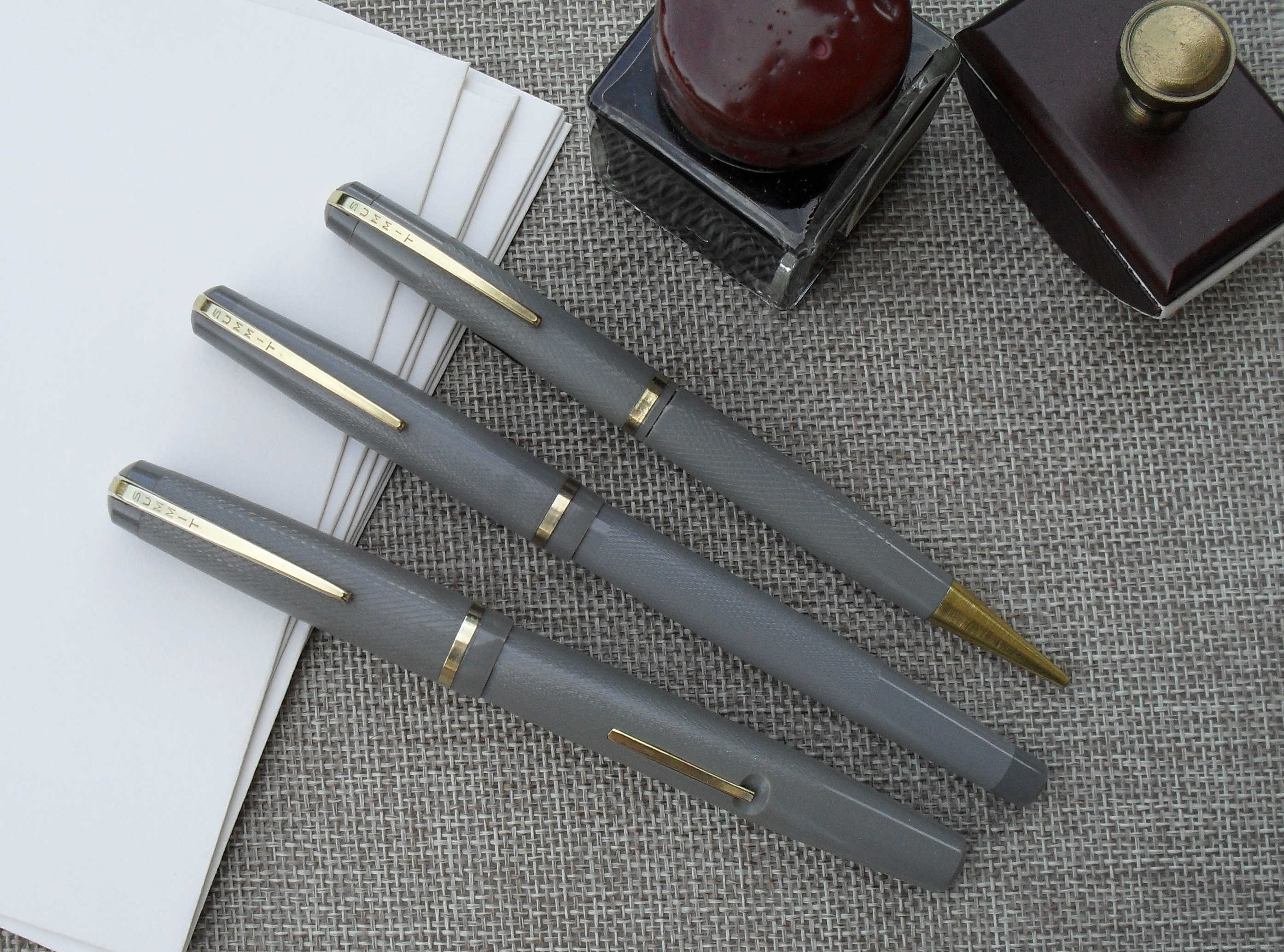 Complimenti per il bel terzetto (quelli per la recensione sono ormai scontati). Il colore è davvero molto particolare, mi ricorda il dove gray della Parker 51.