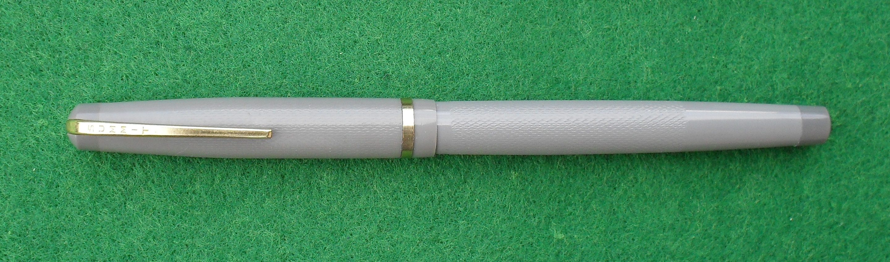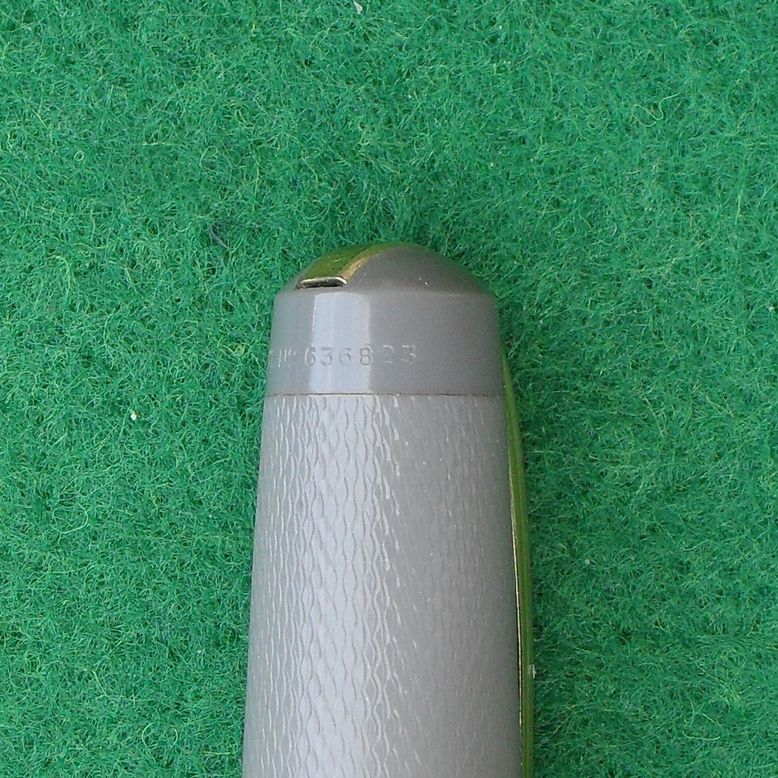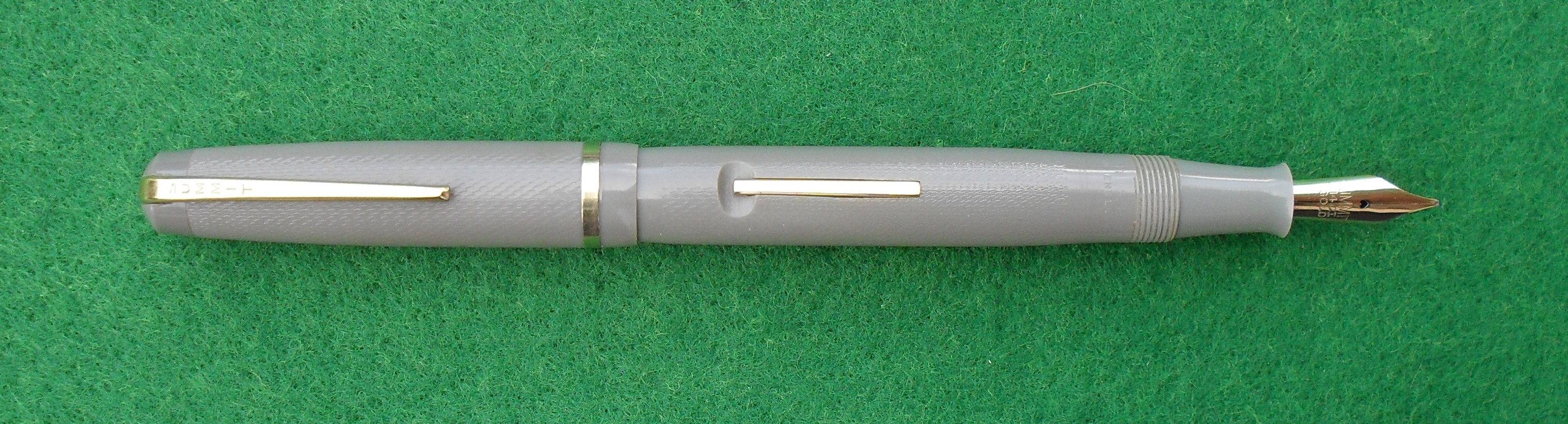 La stilografica ubbidiva ai nuovi canoni estetici scelti da Summit per il secondo dopoguerra, che portarono a penne dall’immagine più filante ed in certo senso più elegante, anche se meno austera di quella delle stilografiche degli anni Trenta. La qualità rimase però la stessa, sempre ottima, così come la decorazione cesellata, offerta sugli strumenti di scrittura in tinta unita. Simpatico anche il moderato contrasto con il grigio delle estremità ed indovinato, almeno ai miei occhi, l’abbinamento con le finiture dorate.