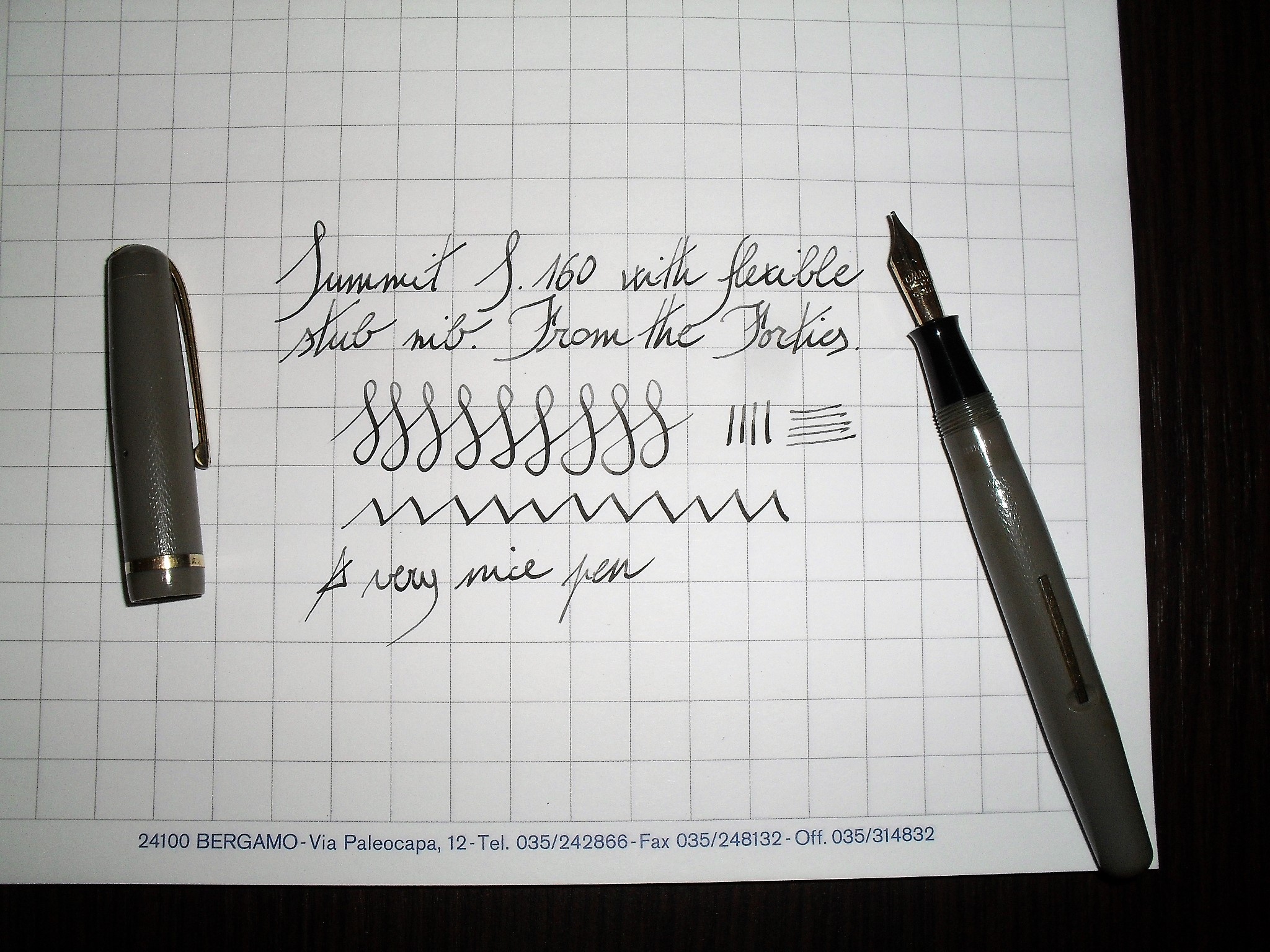 Quindi parliamo di tutta la stilografica. Bene. Purtroppo non ho conservato le altre prove, che credo ti avrebbero soddisfatto. Naturalmente, essendo un pennino stub, il tipo di variazione del tratto si presenta comunque diverso da quello di un flessibile a punta arrotondata.