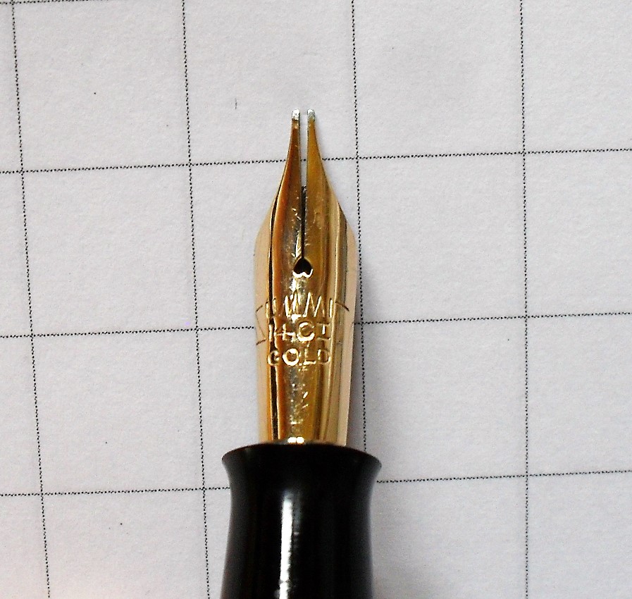 Il pennino è l’usuale ed ottimo Summit a 14 carati, nelle dimensioni medie del catalogo del marchio britannico, e l'alimentatore è il consueto ed efficiente alettato in ebanite.