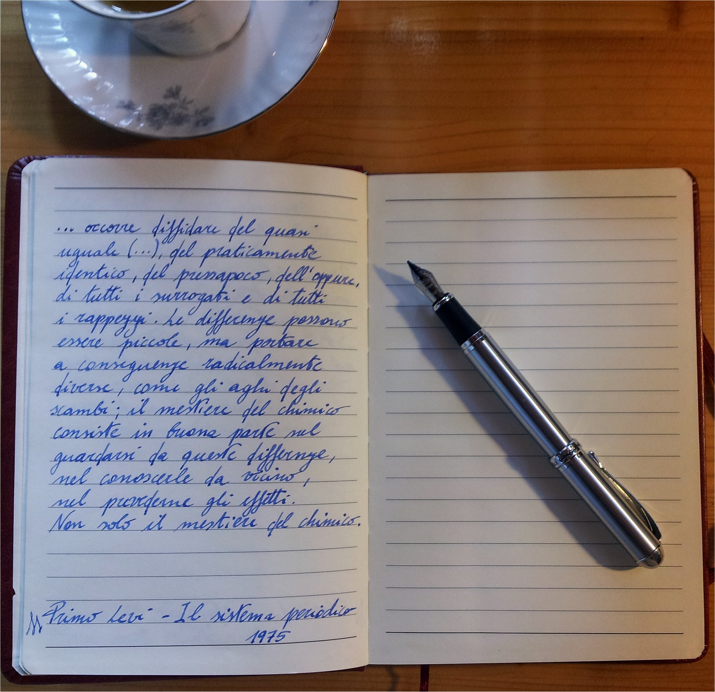 Il quaderno in sè non è niente di chè e la penna è ancora meno di niente, ma con qualche tazza di tea verde Earl Grey (caldo , anche se fuori ci sono 35°) e la musica giusta, tutto può sembrare meglio di quel che è.