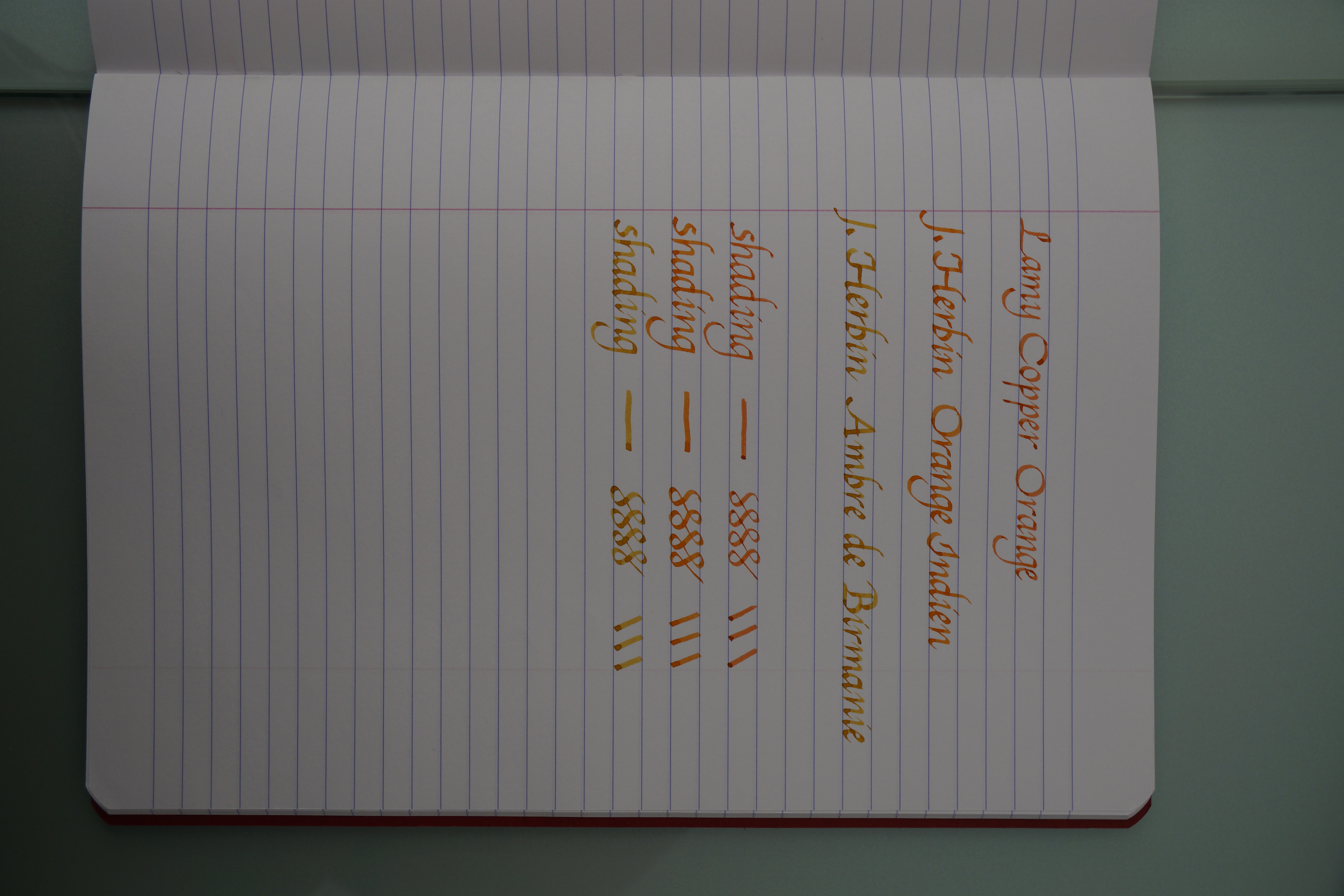 Sulla confezione delle cartucce Lamy non era scritto il nome del colore. Facendo un'indagine in rete, ho motivo di credere che si tratti del “Copper Orange”. Ecco quindi la mia classifica: