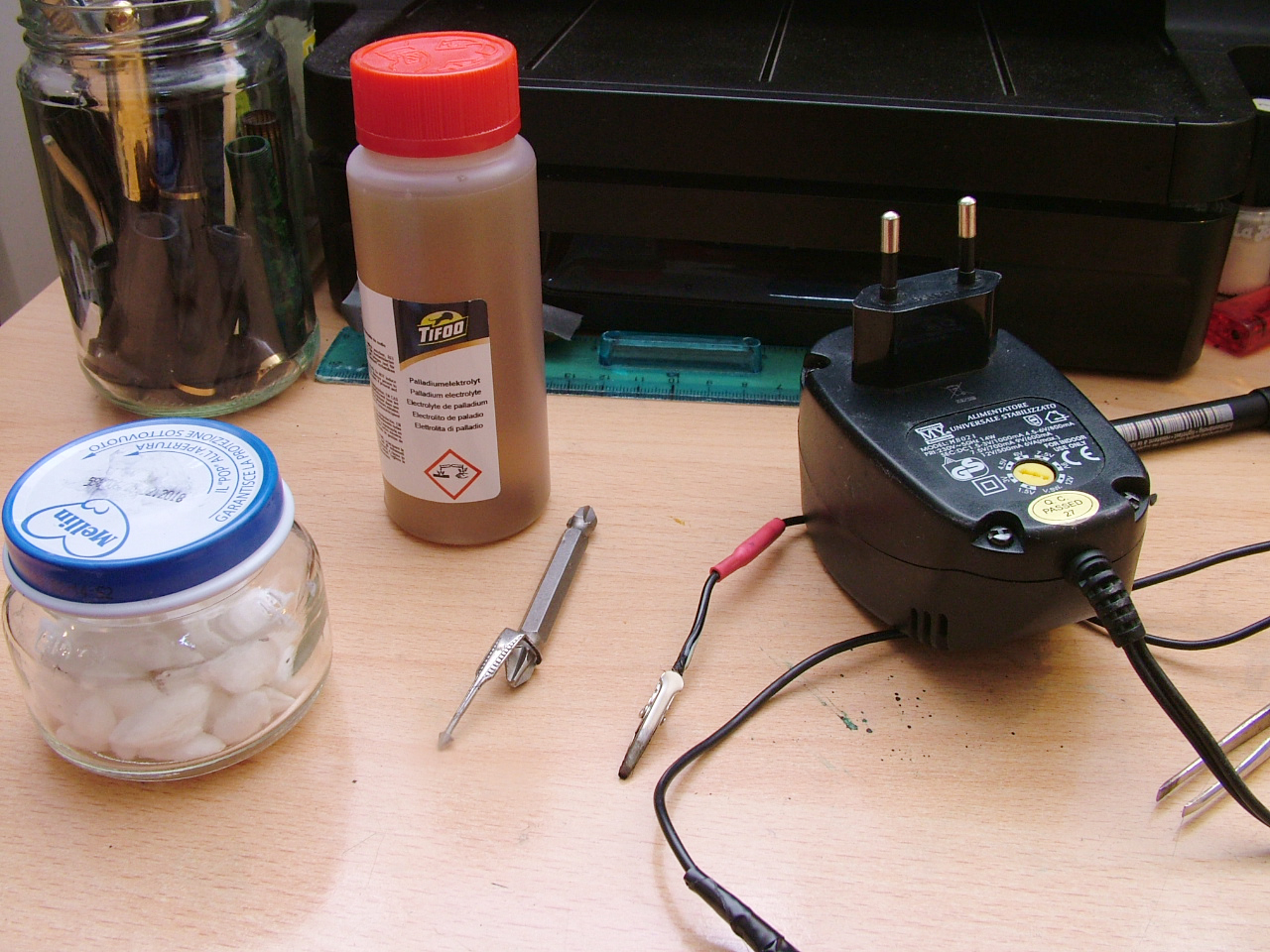 Poichè ho provato l'argentatura e la nichelatura galvanica e non ne sono stato per niente soddisfatto ho deciso di provare col palladio.