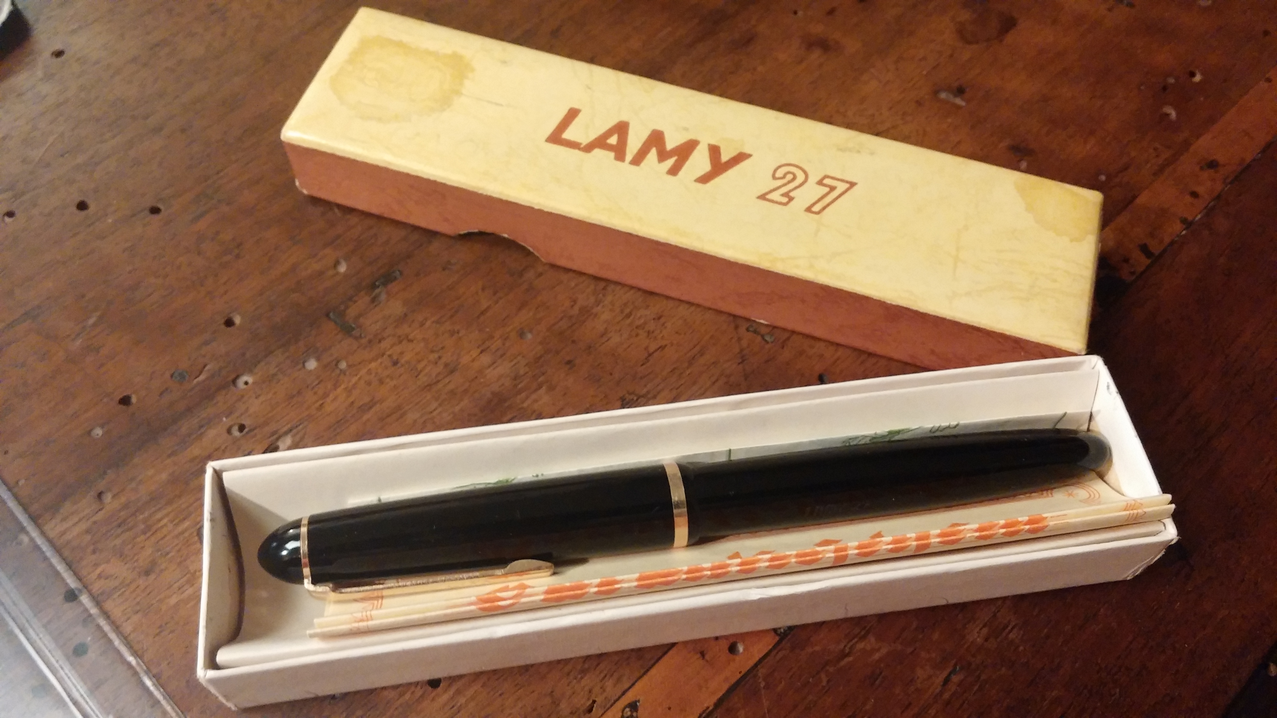 Arrivata l'altro giorno insieme alla Vacumatic, di cui ad un altro mio post, questa Lamy 27. L'ho presa per curiosità: è la mia prima Lamy non contemporanea e volevo vedere se anche quelle più vecchie univano linee essenziali a praticità d'uso e solidità costruttiva.