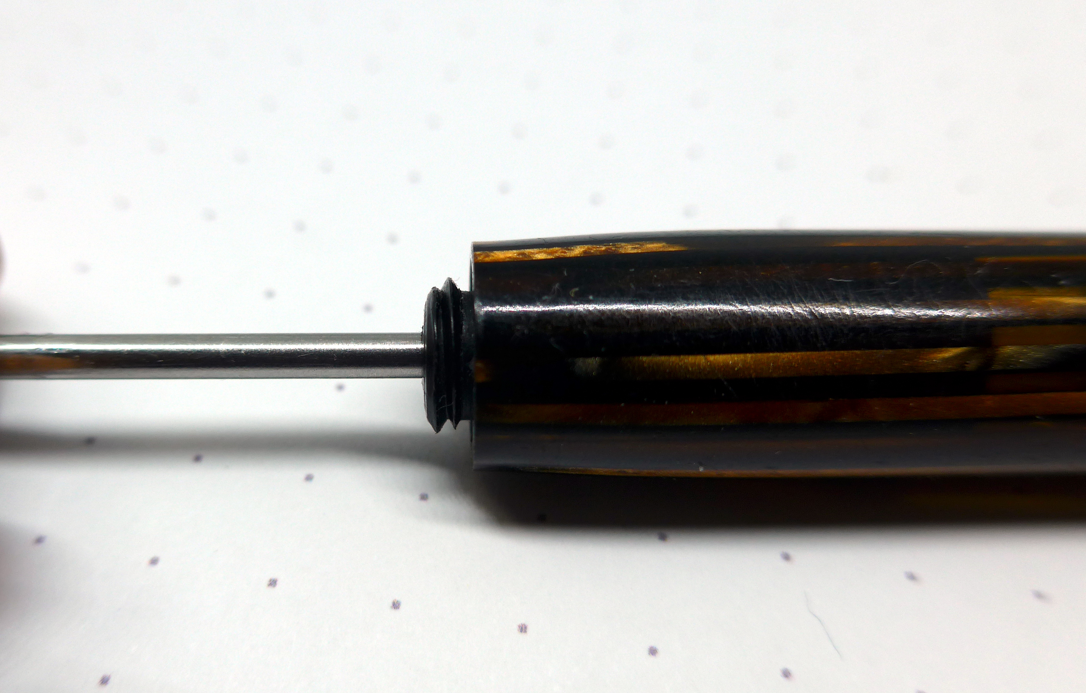 Ho motivo di ritenere che guarnizione di tenuta in fondo alla canna faccia il suo mestiere (ho utilizzato il metodo di valutazione della tenuta detto "maxpop") e, considerati i rumori di risucchio, penso che anche la guarnizione di pompaggio crei una sufficiente depressione per caricare la penna almeno abbastanza per soddisfare le mie limitate esigenze.