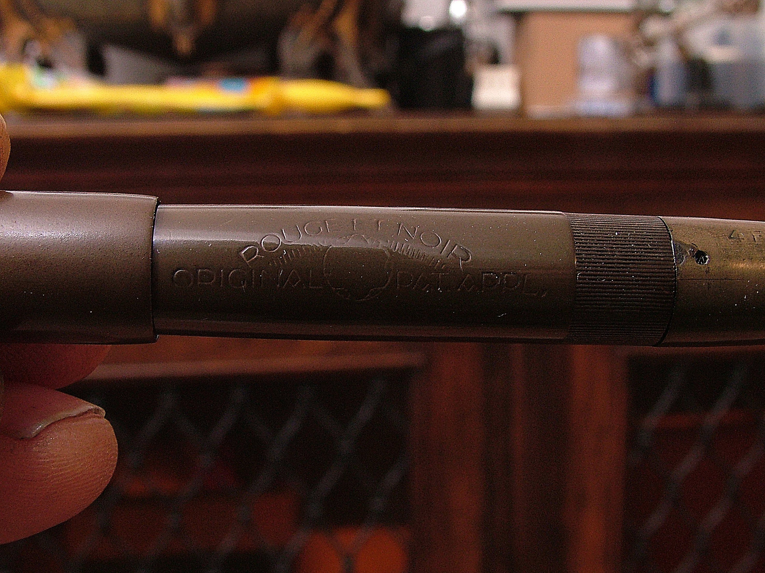Purtroppo sul cappuccio è assente, non vi è alcuna scritta, propendo che si sia consumata, su wiki c'è un cappuccio uguale marcato rouge et noir con gli stessi fori nella parte alta