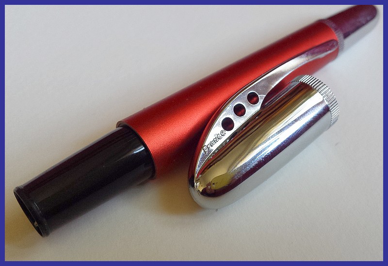 Il look mi piace molto. Il cappuccio ha una clip con tre fori accanto ai quali compare la scritta Paris sul fronte e France sul retro. Anche il pennino ha 10 piccoli fori di areazione in pendant con quelli del cappuccio e alla base del pennino compare la sritta Bic. Lo stile mi ricorda un po' l'immaginario steampunk o della fantascinza... design futuristico con linee abbastanza dolci.
