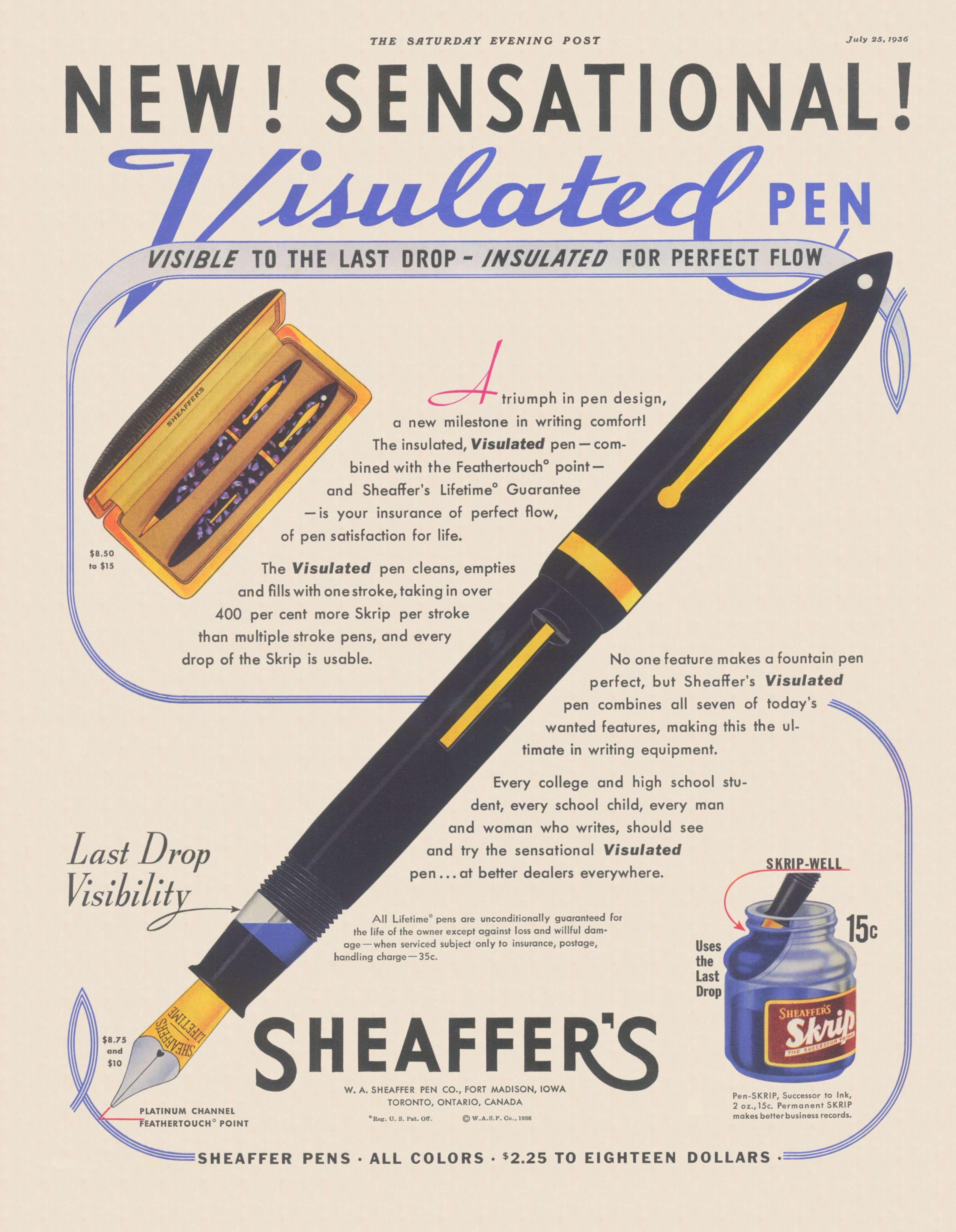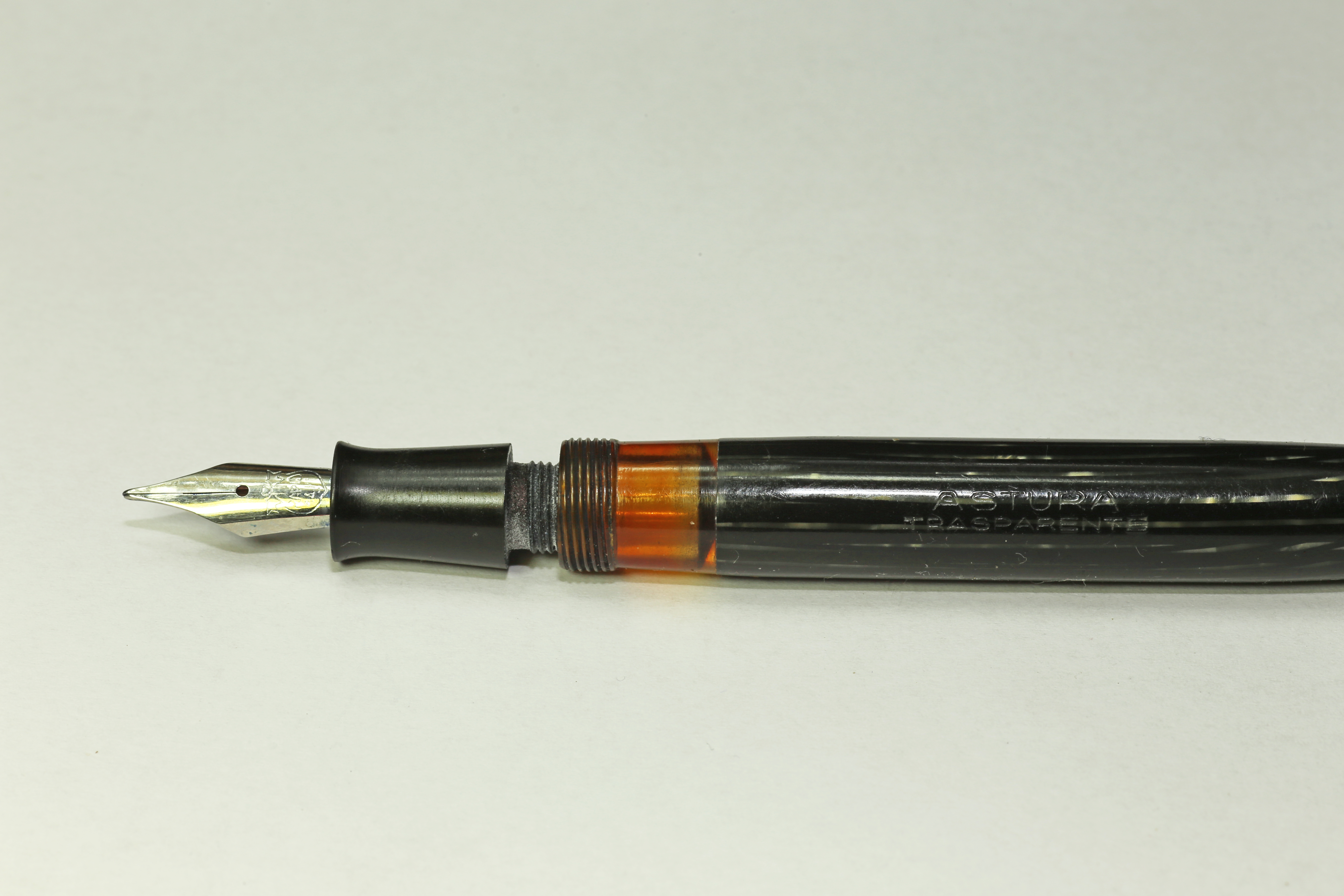 A differenza delle penne americane citate (Sheaffer e Parker di sicuro) la parte "trasparente" che dà il nome al modello sembra far parte del fusto e non della sezione, come invece accade anche sulla più famosa e forse prima delle italiane, l'Aurora Topolino del 1937. In realtà, come si vede nella bella penna di Fabrizio che l'ha smontata viewtopic.php?f=43&t=8380 la sezione è tutto un pezzo fino alla parte trasparente oltre la filettatura.