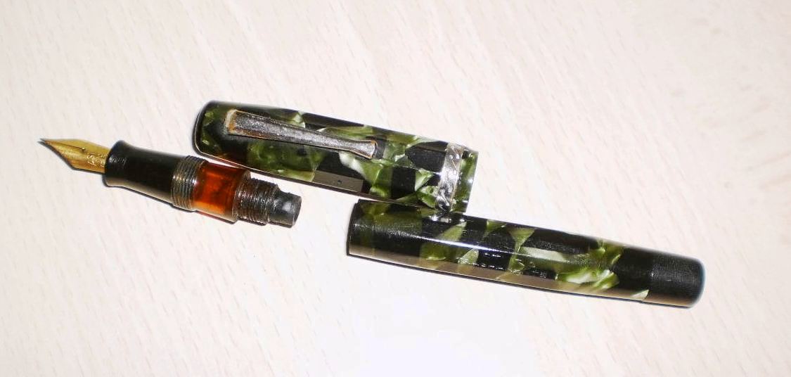 Gran bella penna, bella la celluloide e interessante il sistema di caricamento, che ricorda un po' il Visulated della Sheaffer (usato anche da Parker ed Eversharp). Grazie anche per le foto, provvedo subito a pubblicarle, che su questo marchio sul wiki c'è davvero poco.