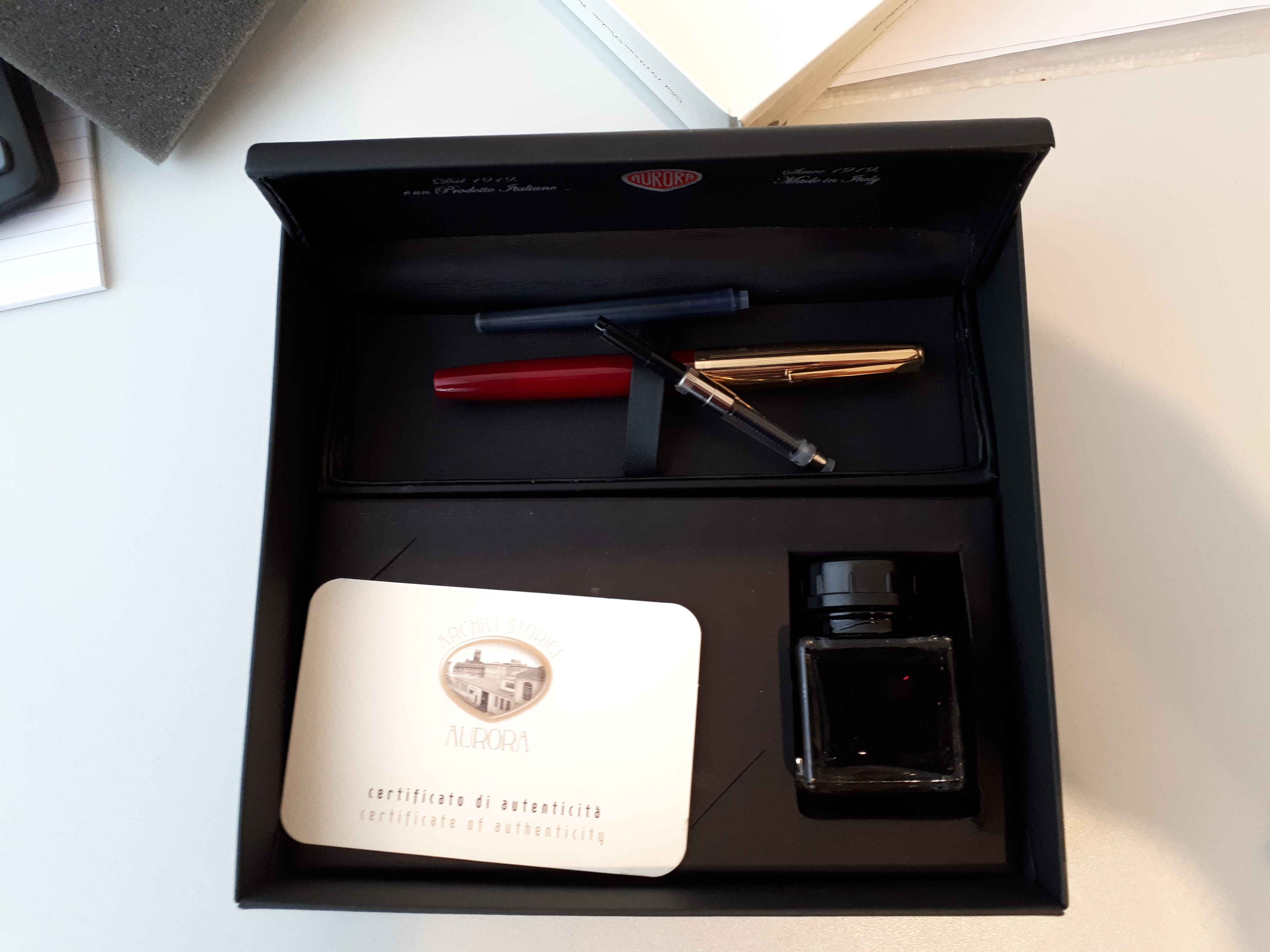 Conclusioni: una penna che io trovo elegante e molto particolare, non passa inosservata, anche in virtù della triplice colorazione molto raffinata e davvero parecchio retrò. Il prezzo non è eccessivo ma nemmeno bassissimo, ma la qualità Aurora in genere non tradisce.