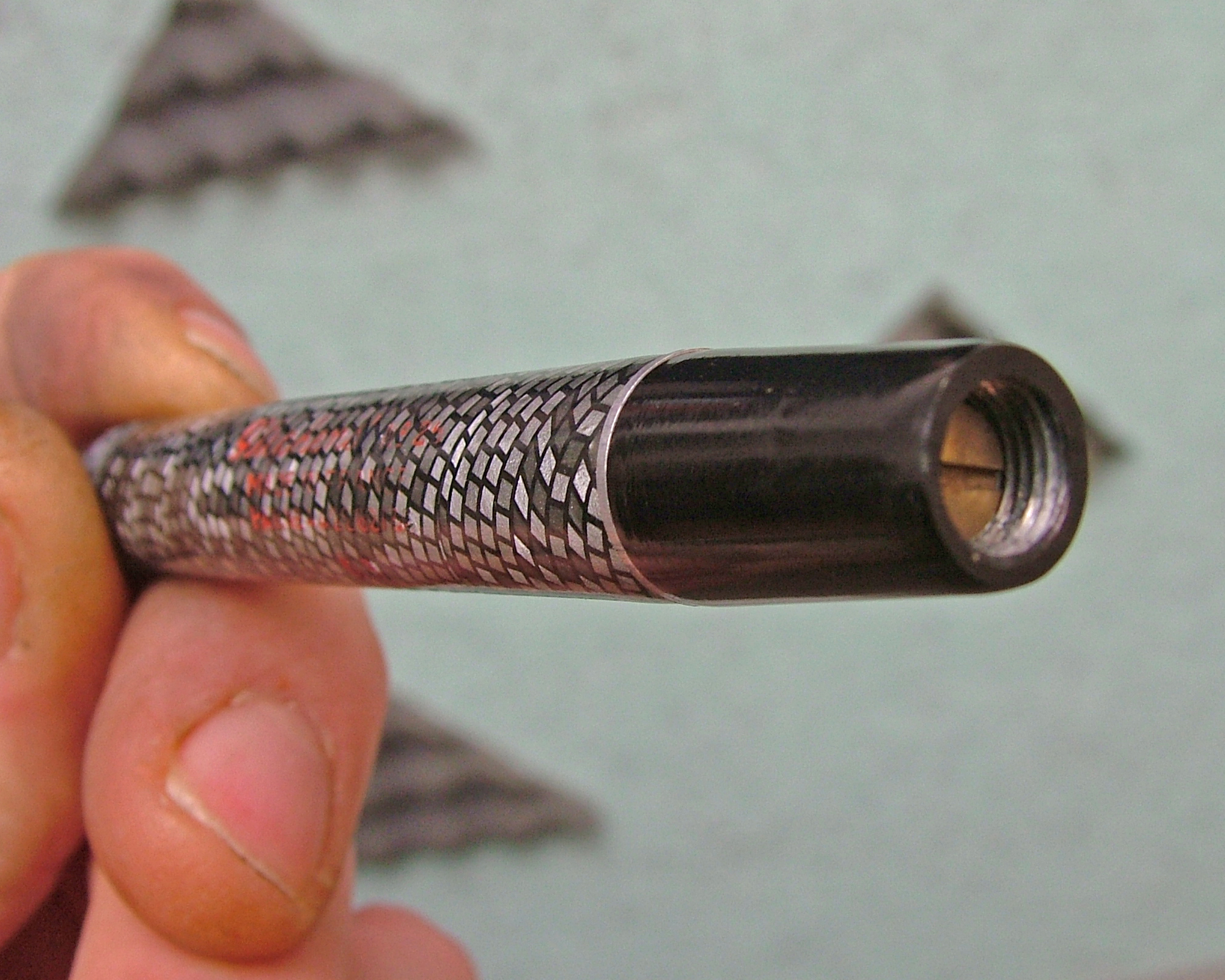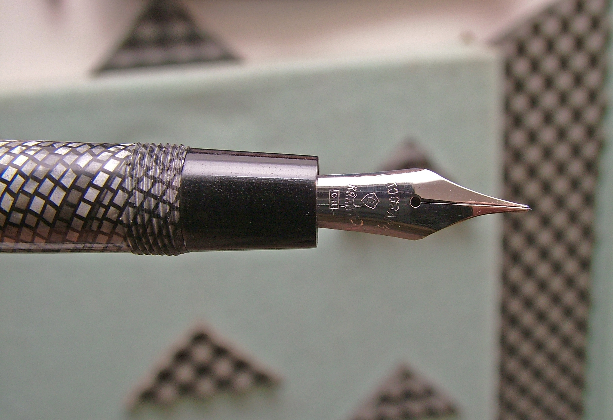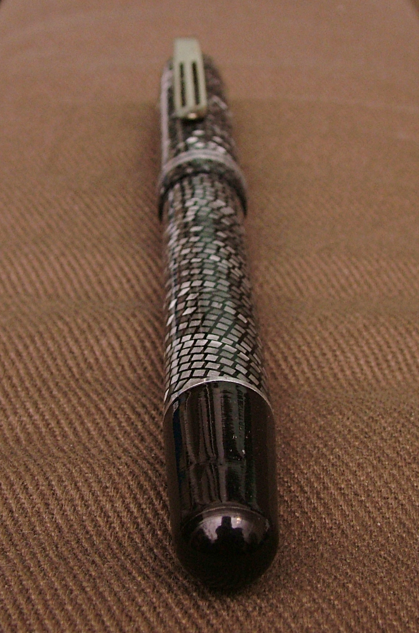 Quello che mi ha colpito di questa penna è la celluloide a pelle di serpente, sensazione che si prova anche al tatto.