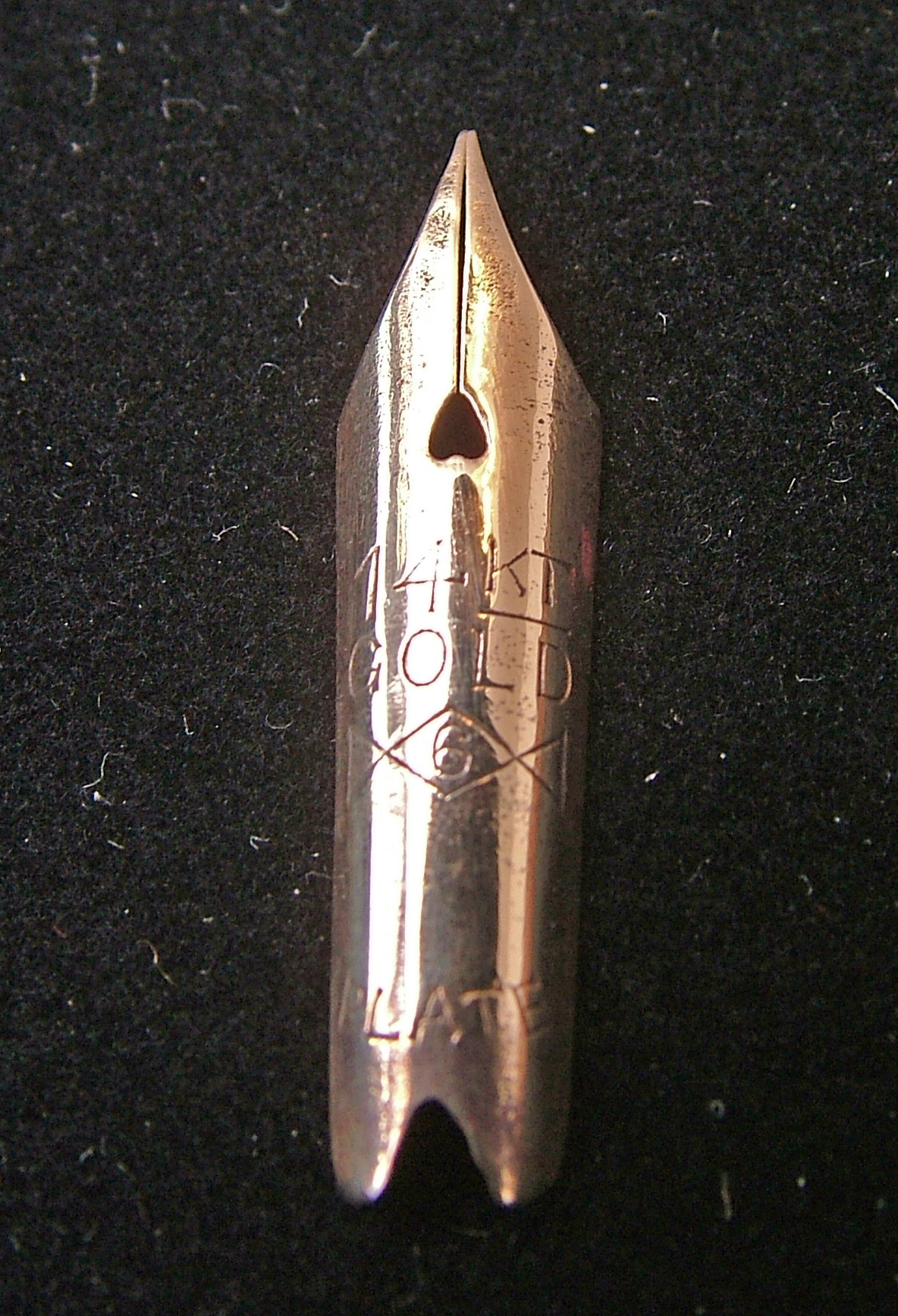 Negli anni 20 c'era la Howard Hunt Pen Co che negli USA aveva preso la abitudine di scrivere 14 K Gold Plated col in plated in fondo al pennino come li (per farlo sparir dalla vista una volta montato), per farli sembrar d'oro.