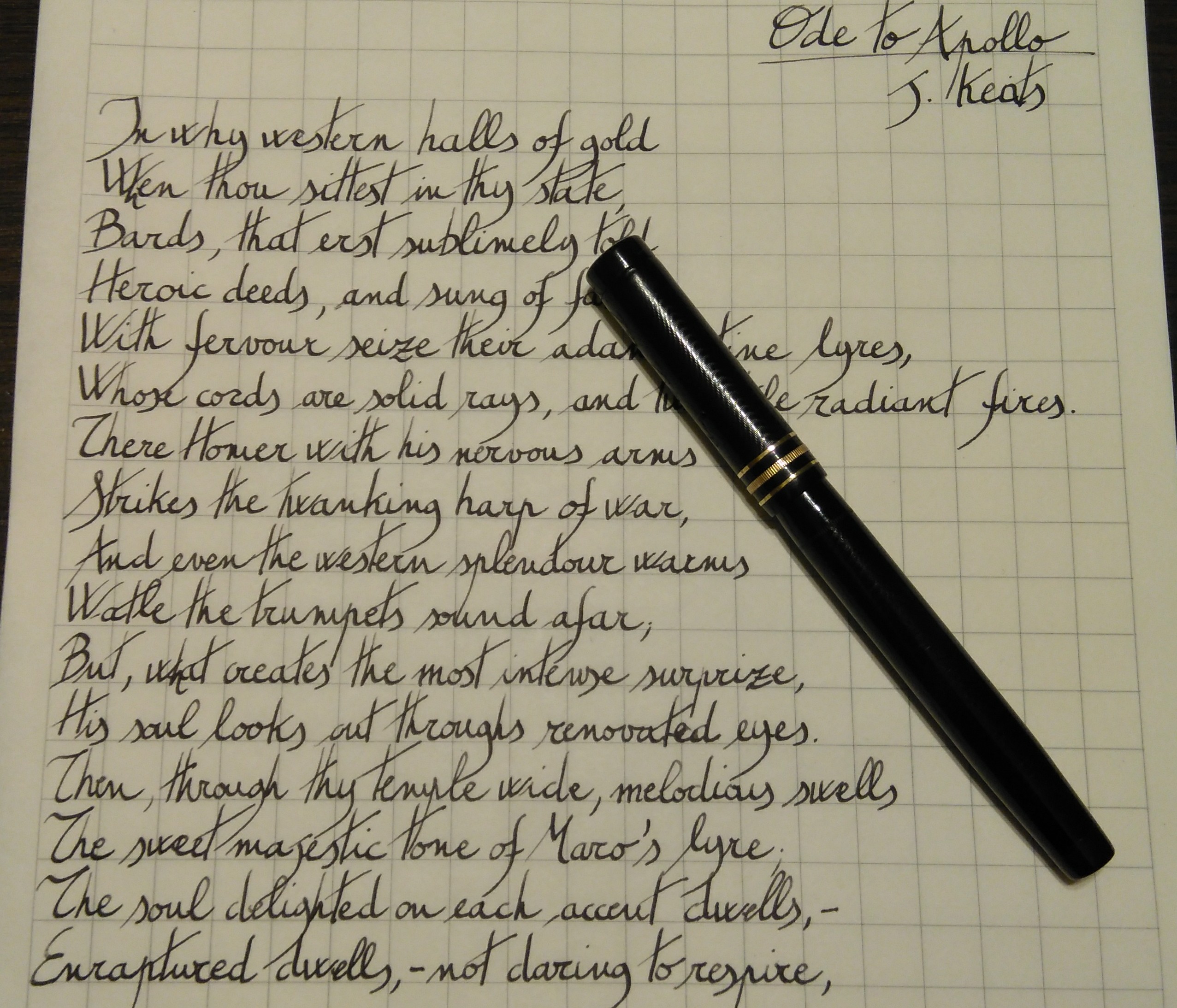 Niente di particolare, solo un primo tentativo, da neofita completo, nell'uso del pennino flessibile della mia amata Swan 245/60. Devo studiare e fare molta pratica...