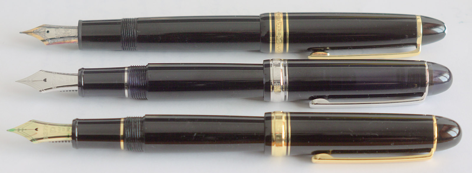 Qui a confronto (un po' approssimativo) con la 3776 Century nera normale dorata e (in alto) la Mont Blanc 146: