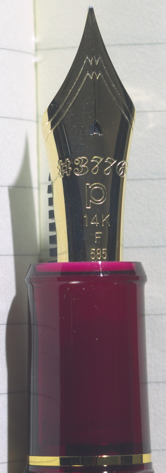 Il pennino è il solito 14K, qui nella versione standard non rodiata e in grado F: