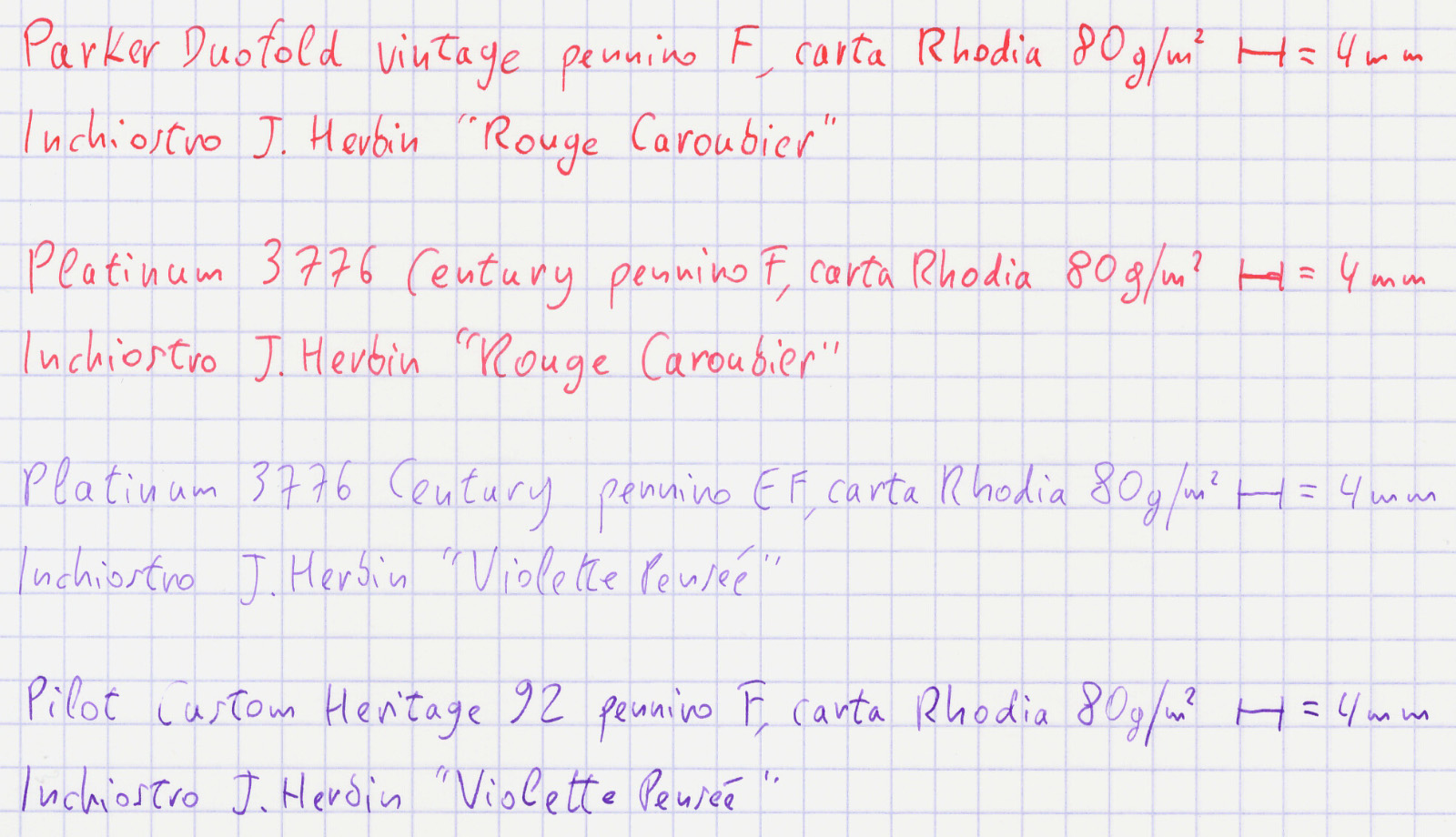 E ora una prova con scrittura minuta; che è anche una recensione scritta a mano e un confronto diretto con due cuginette: