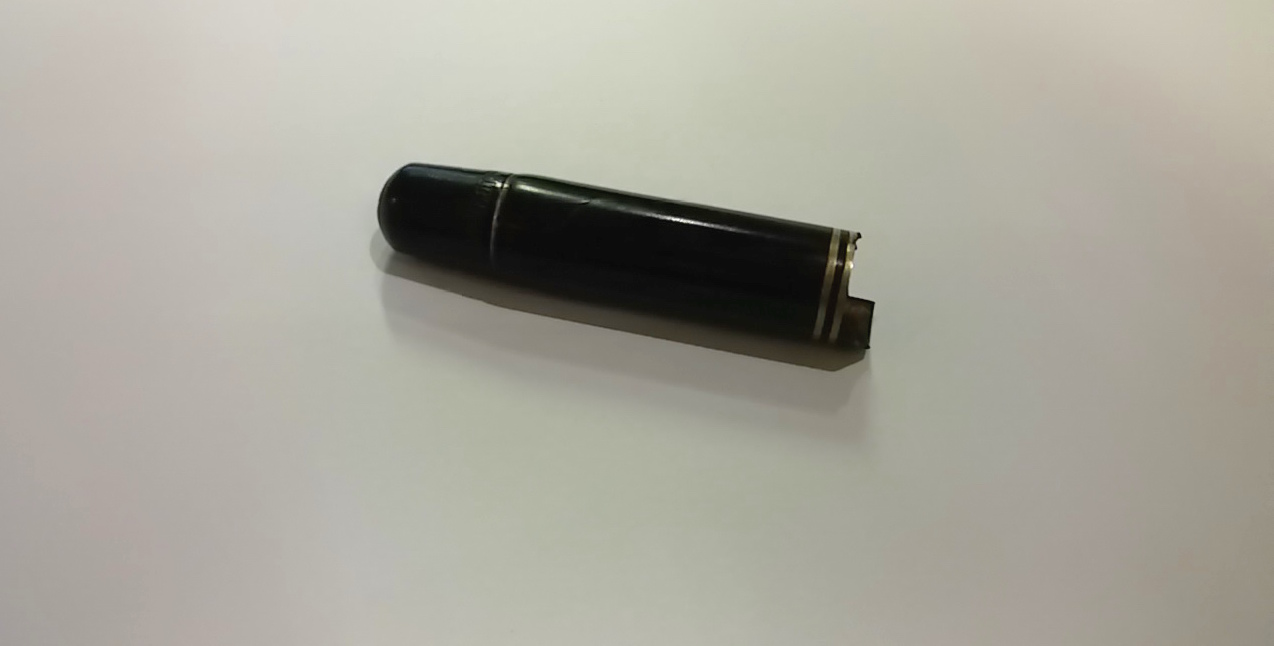 Buongiorno a tutti, la sfortuna mi perseguita con le Pelikan 100 e 100 n, non riesco mai a trovarne una che sia intera! In questa il cappuccio è molto mancante nel labbro inferiore, cosa mi consigliate, taglio il pezzetto rimanente arrivando alla prima veretta o tento una ricostruzione?