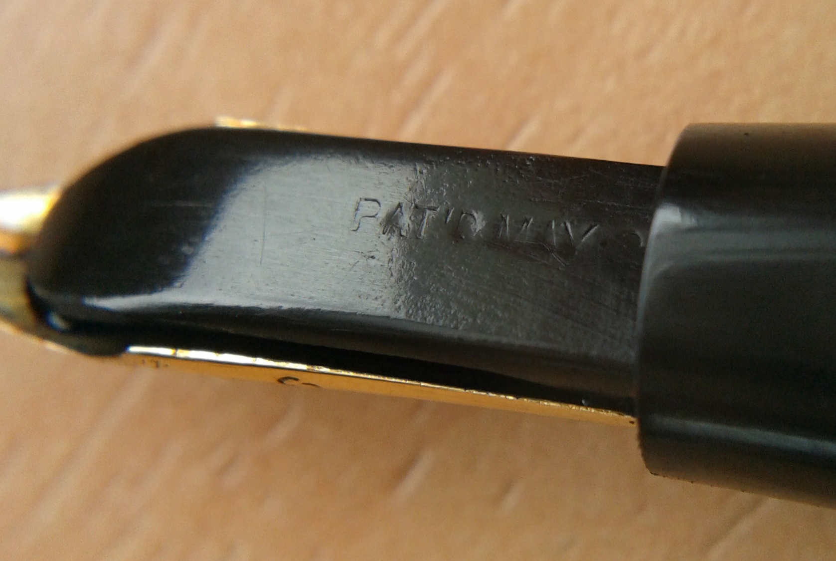 La scritta sul fianco del fusto molto sbiadita si legge su due righe "Waterman's" e sotto "Made" "in U.S.A." con in mezzo il logo "IDEAL". Da ricerche PARE che questo modo di scrivere risalga alle prime 52 rippled (o in generale alla prima serie "5") uscita, quindi nel 1924 o poco prima. E' stato usato anche nel dopoguerra per penne fuori dalla serie "Ideal".