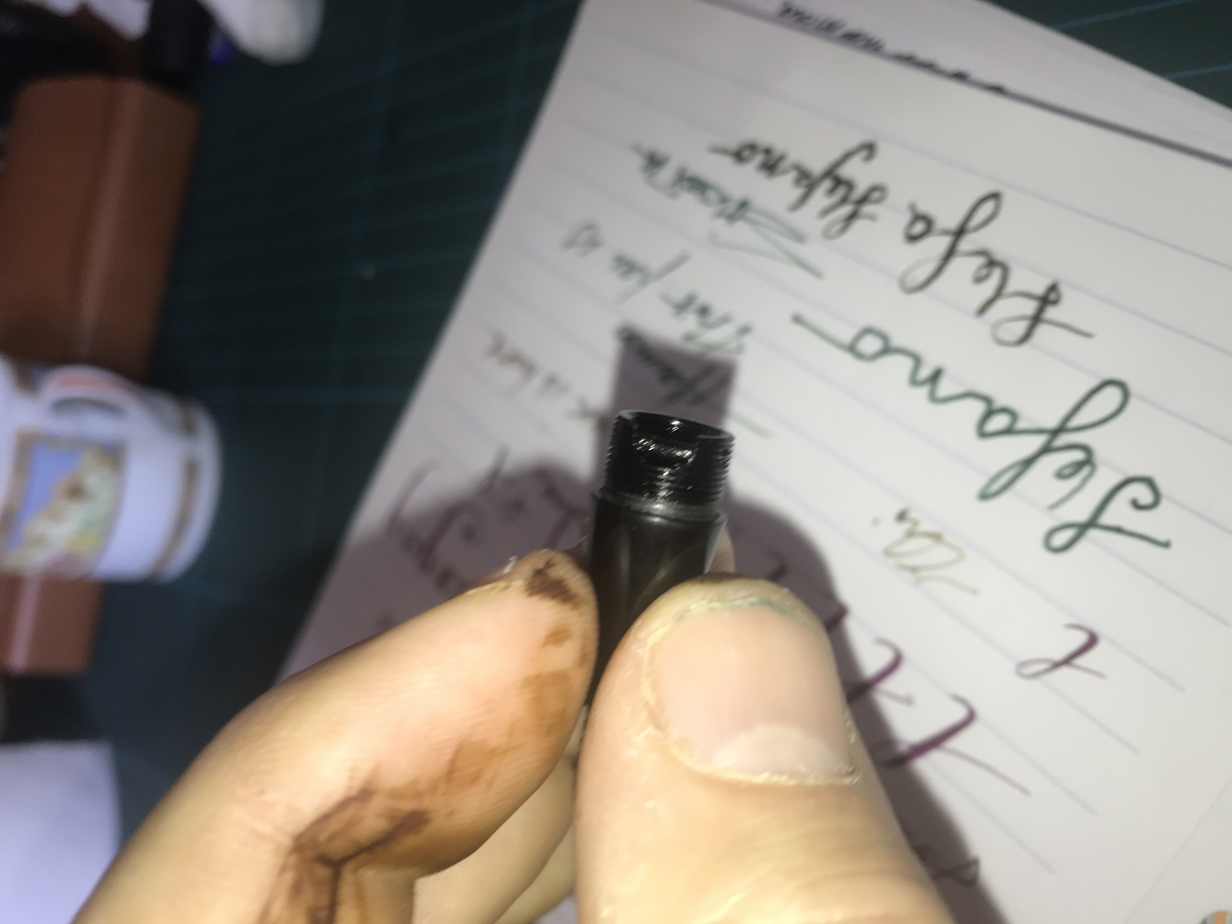 Non solo, ma il pennino deve stare in una certa posizione, ovvero col foro di sfiato in corrispondenza della tacca.