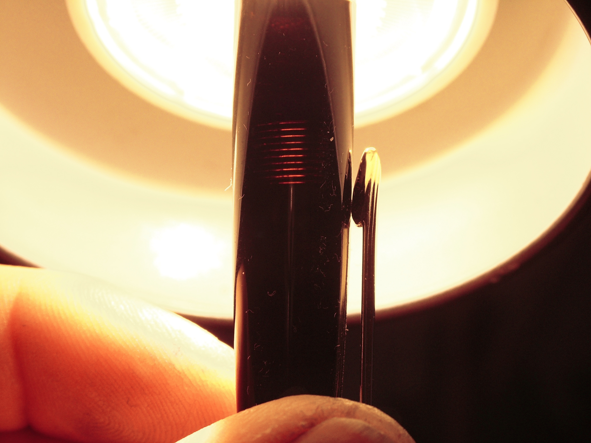 Deve essere una caratteristica delle resine. Anche le Sheaffer's Imperial IV son rossastre se osservate contro luce forte. L'ho notato sui pennini intarsiati