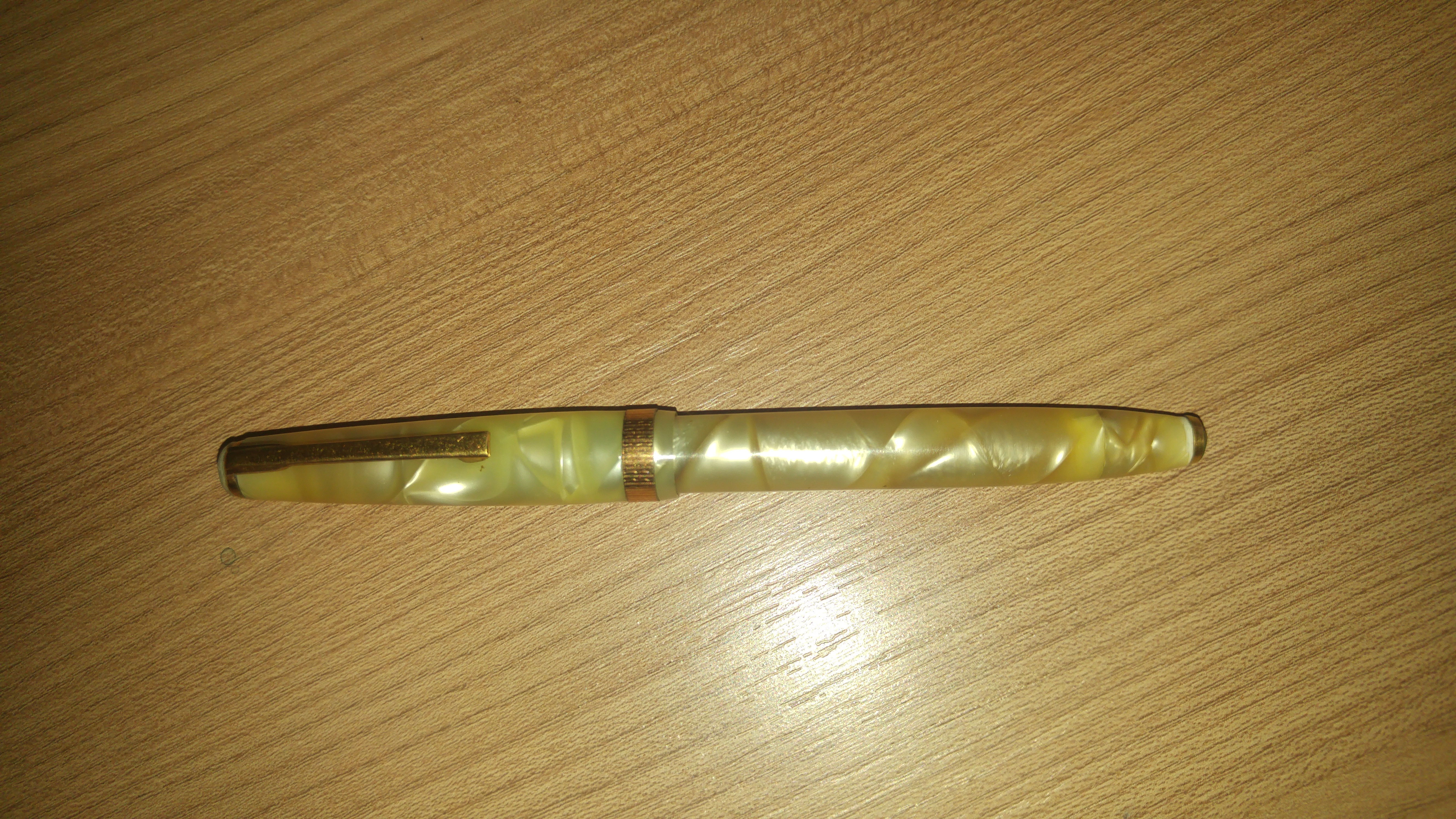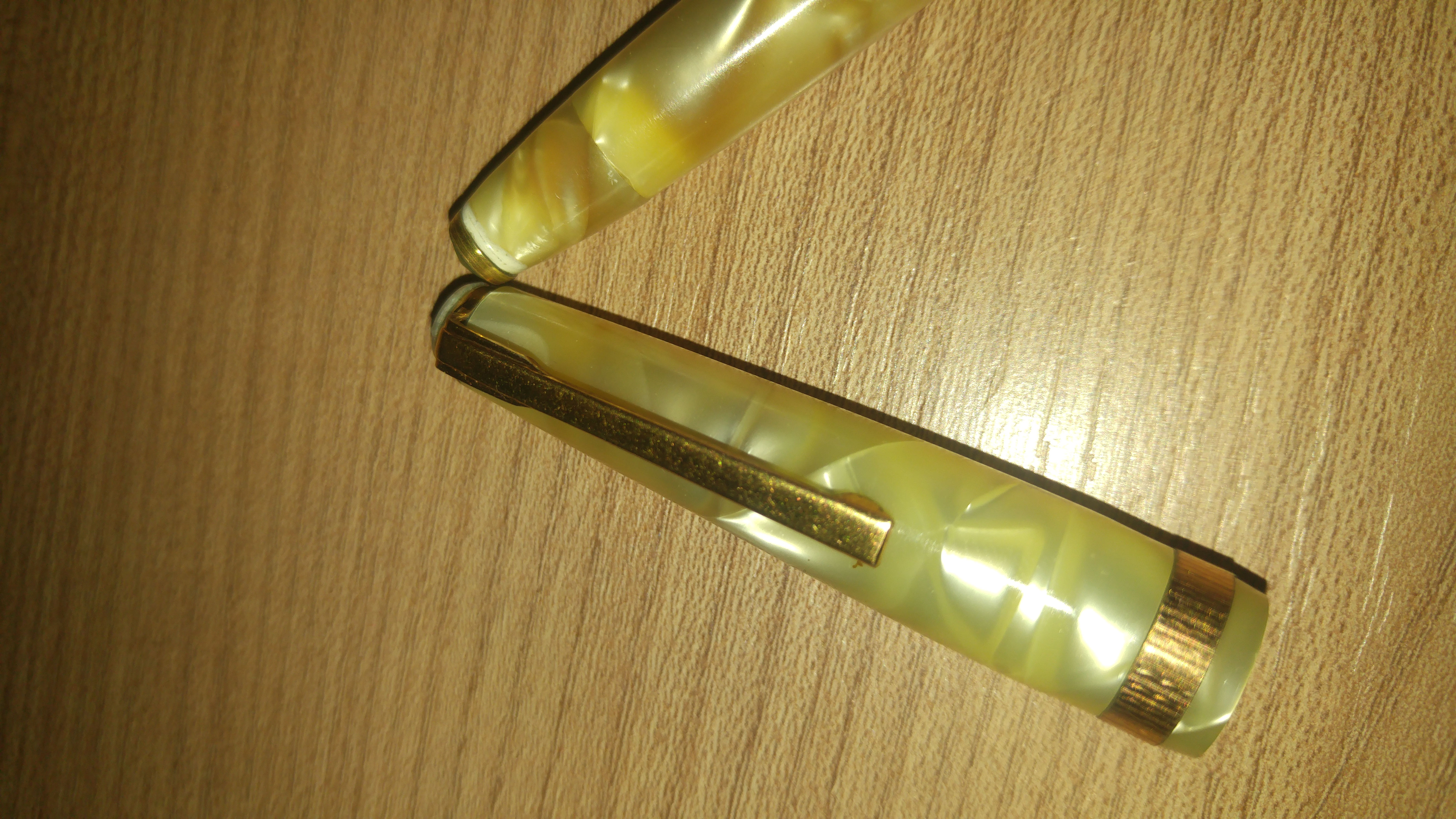 Ho trovato questo splendore con pennino rotto, che ho prontamente sostituito con uno NOS, preso on-line, marcato Radius Superior 585 nr. 2. Purtroppo ho l'impressione che non sia tanto flex, forse perché è nuovo e necessita di un po' di rodaggio.