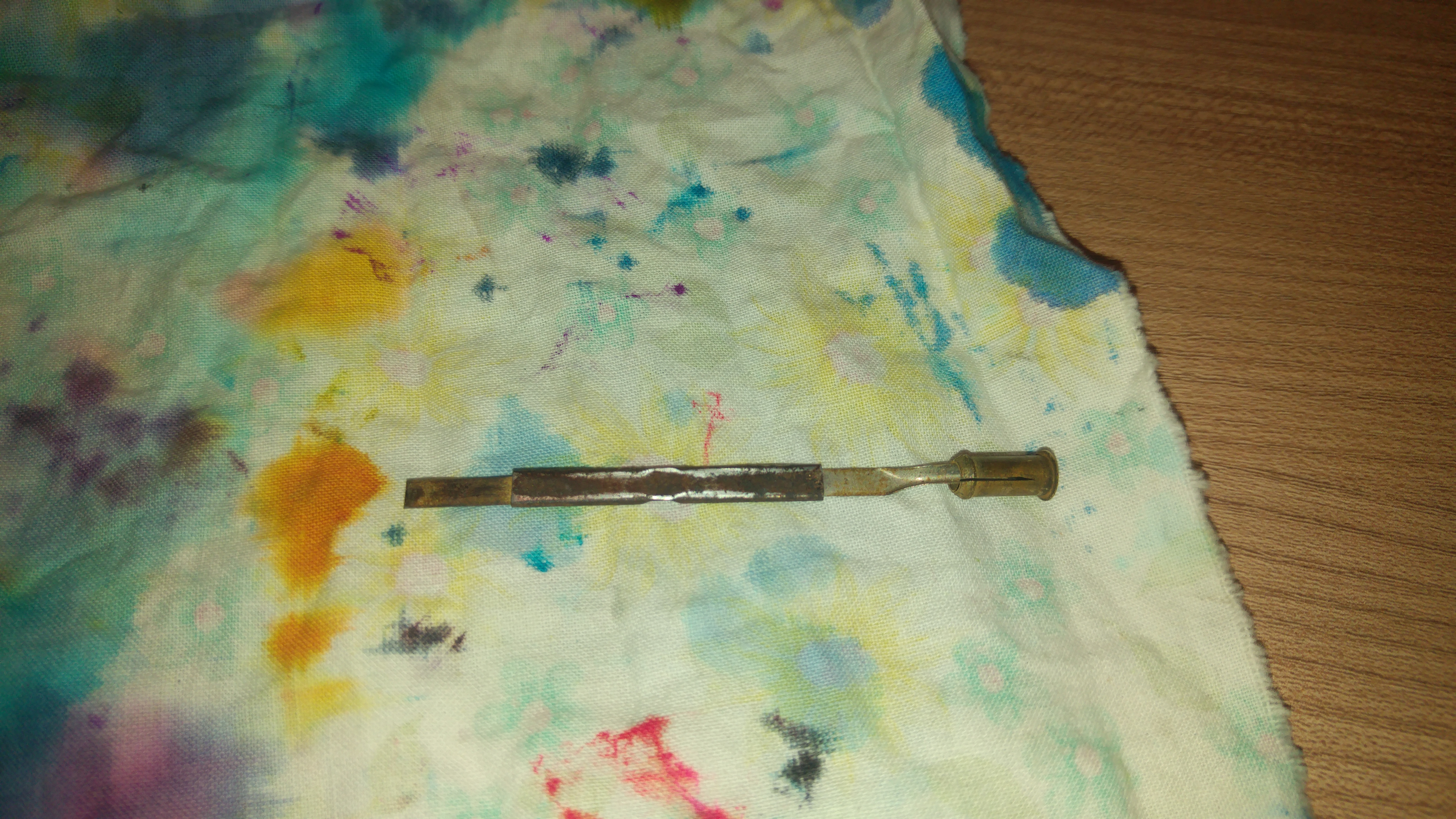 Per mettere la barra con la sezione ed il sacchetto montato sul fusto, devi levare il fondello posteriore, estrarre il pulsantino con una pinza a becco e nel foro infilare la barra delicatamente con la parte più larga (barretta più corta applicata alla parte più lunga) rivolta verso il sacchetto.