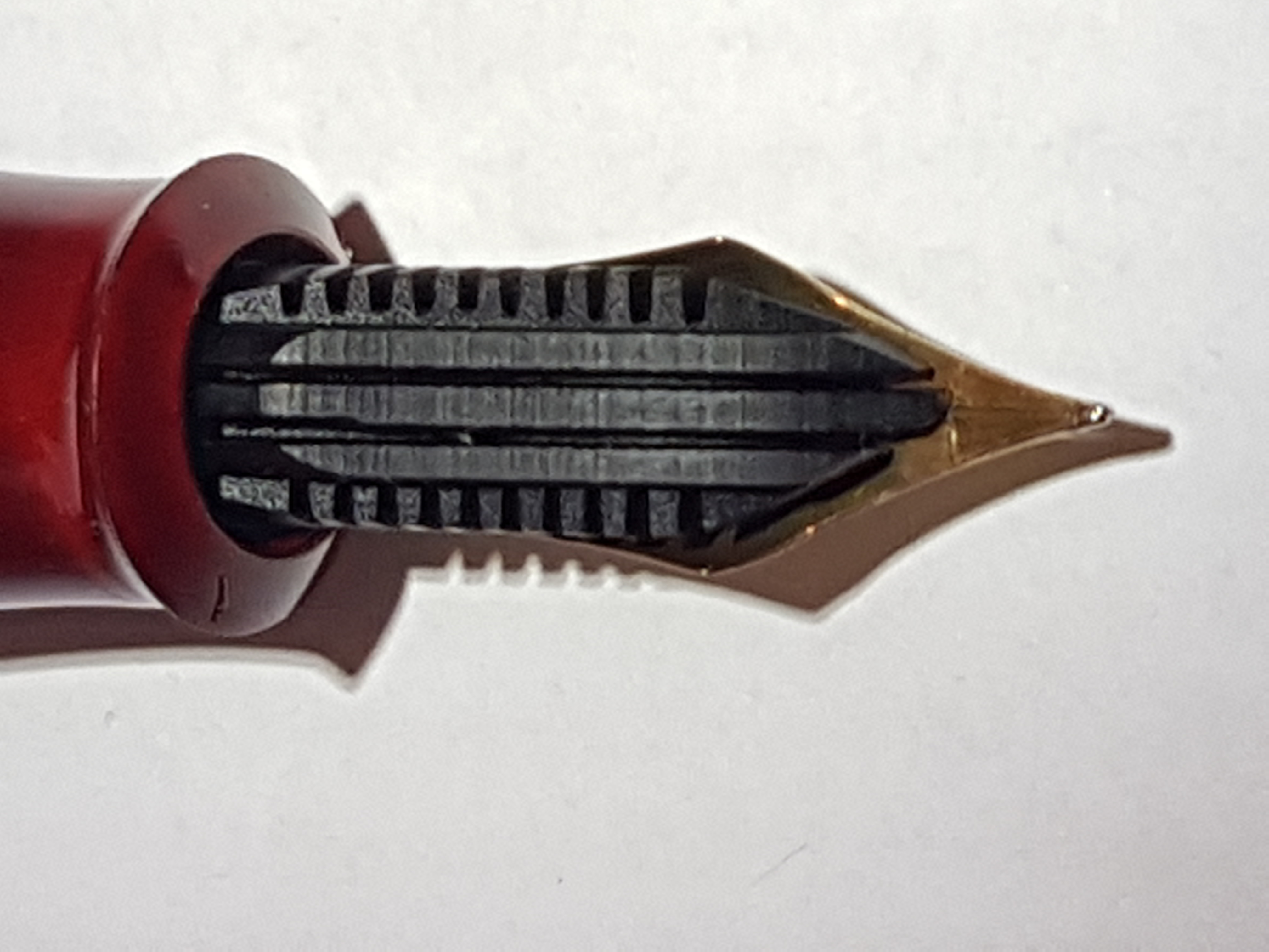 Osservando altre foto in rete ho notato che tutte queste penne hanno questo pennino e alimentatore, quindi si può contestare solo il taglio, che resta in ogni caso non accettabile.