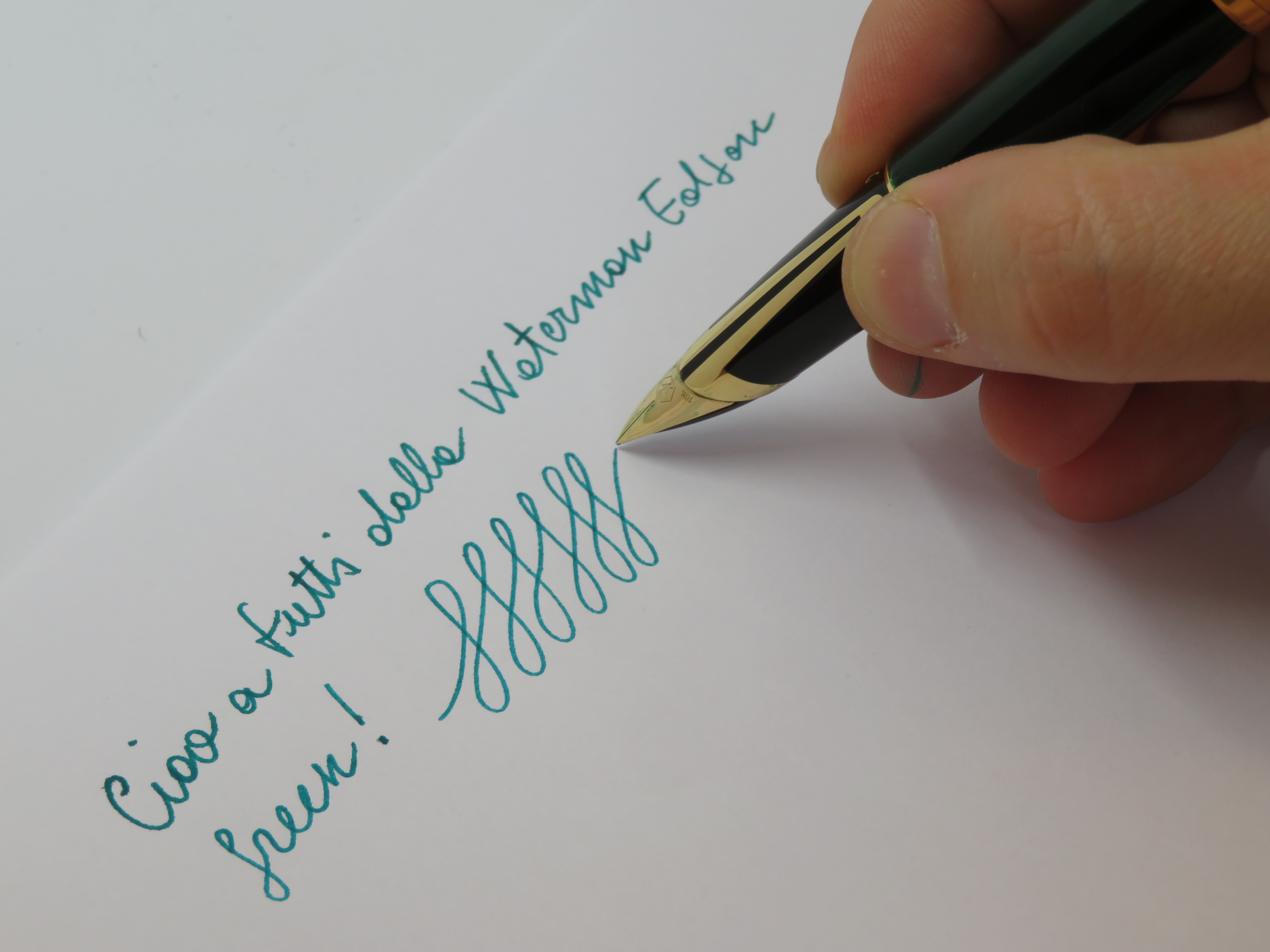 Passando per la strada, dalla vetrina di una cartoleria ha fatto prepotentemente TOC TOC una Waterman Edson Green, una penna che non avevo mai visto dal vivo. Il corpo assolutamente gigantesco non era verde, era...luminescente, solido e liquido insieme, opaco e trasparente insieme, ho cominciato a chiedermi quale sarebbe stata la sensazione al tatto: fredda, calda, vellutata? Mah. Poi il cappuccio satinato con rifiniture lucide, l'ogiva slanciata, il corpo di scrittura con un design tra Goldrake e Fabergè. Un oggetto straordinario venuto dallo spazio? E' radioattiva? Quanto peserà? E' la bacchetta di Albus Silente, o un Orcrux di Lord Voldemort?