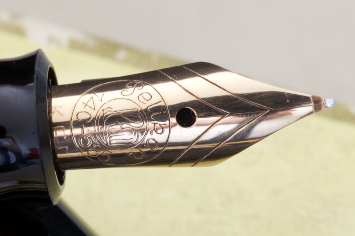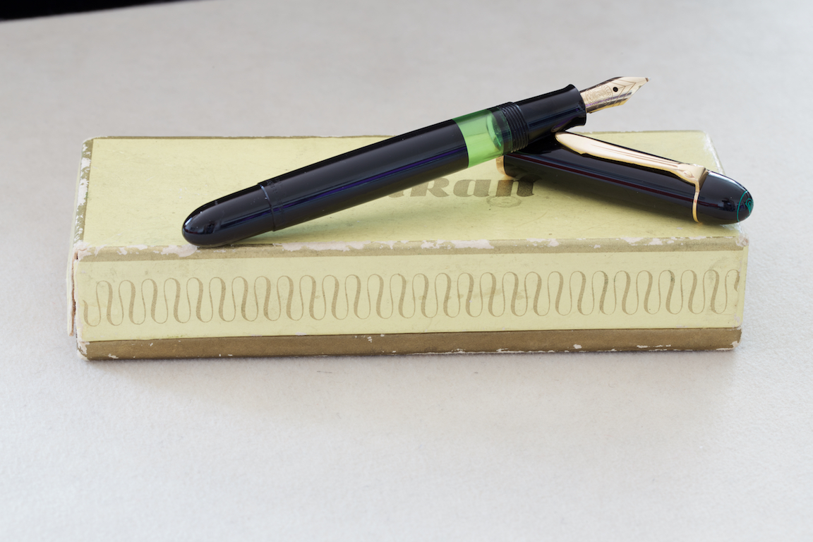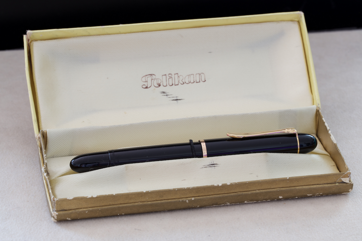 Buongiorno, oggi vi presento una recente acquisizione, una Pelikan 140 nera, mai utilizzata, con il suo bell' astuccio e istruzioni. Quando trovo le penne accompagnate dall' astuccio e istruzioni sono molto contento in quanto stravedo per quest' ultimi "accessori". La penna aveva il pistone quasi completamente estratto, è bastato estrarlo completamente, dare un velo di grasso al silicone alla guarnizione e riinserire il tutto; il pennino è un Pelikan Kugel extra fine, molto particolare nella sua forma e meraviglioso nella scrittura.