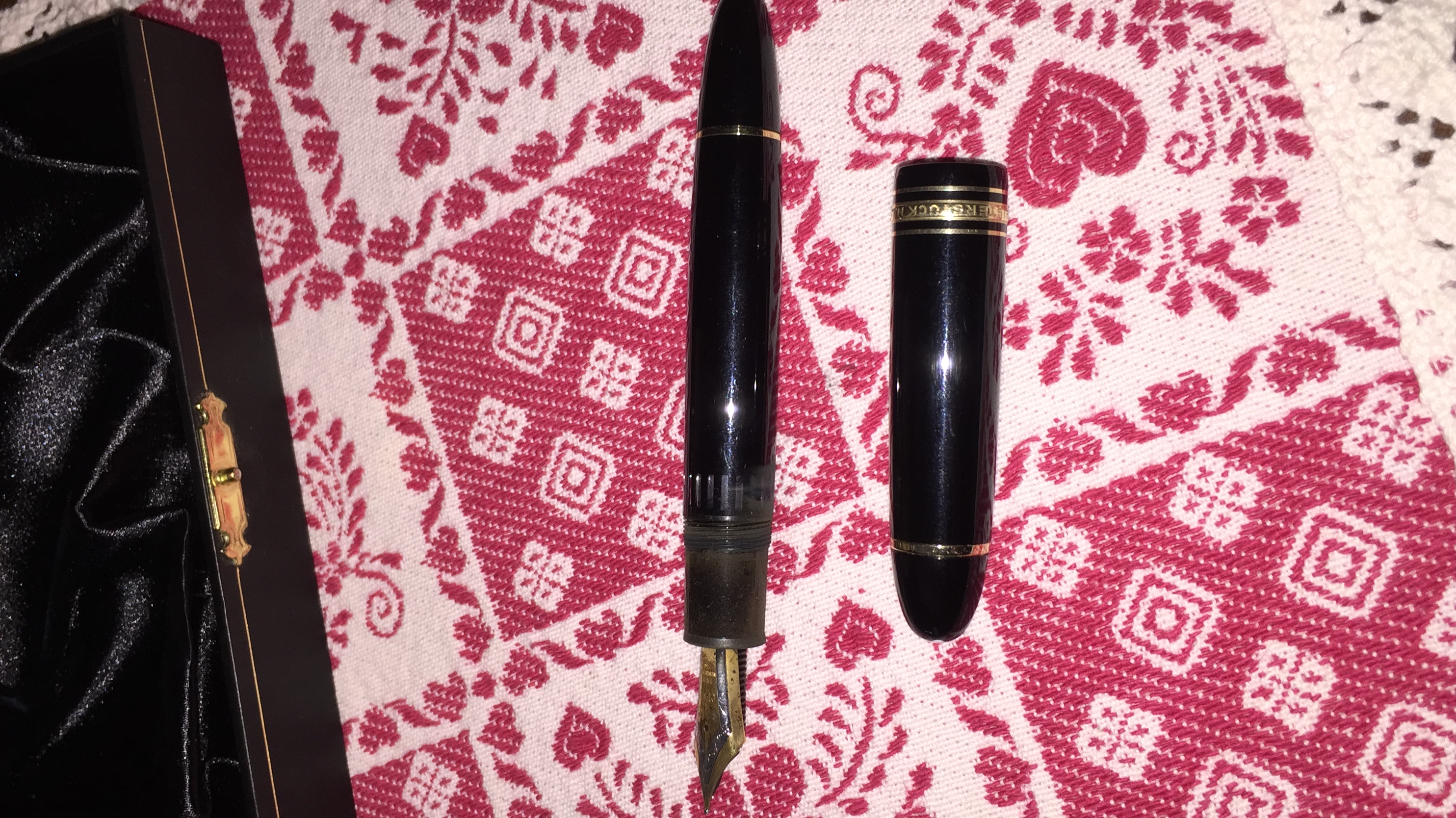 Non occorrono presentazioni per il mio nuovo arrivo, ovvero una MB 149 con scatola inchiostro dedicato, usata pochissimo, pennino fine bicolore, produzione dopo il 1993, ha il seriale sulla clip. Il “sigarone” nero con una eleganza senza tempo.